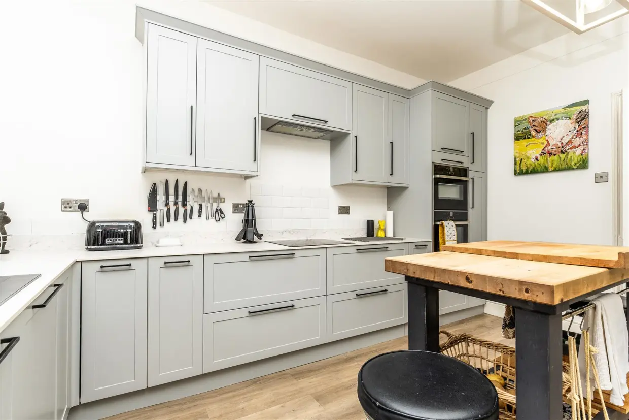 The breakfast kitchen is well-appointed with a range of modern units and appliances, offering ample storage and workspace. It is designed for both functionality and style, making it a perfect space for cooking and casual dining.