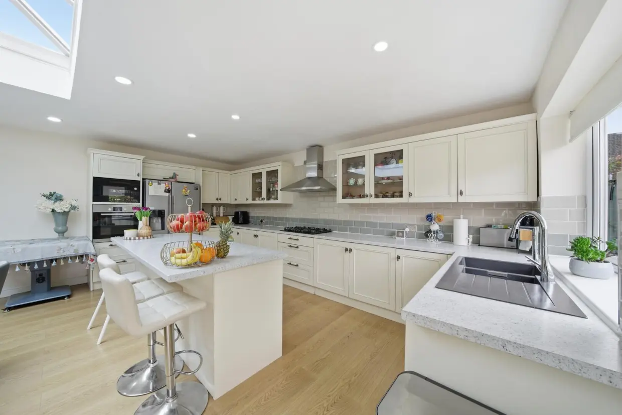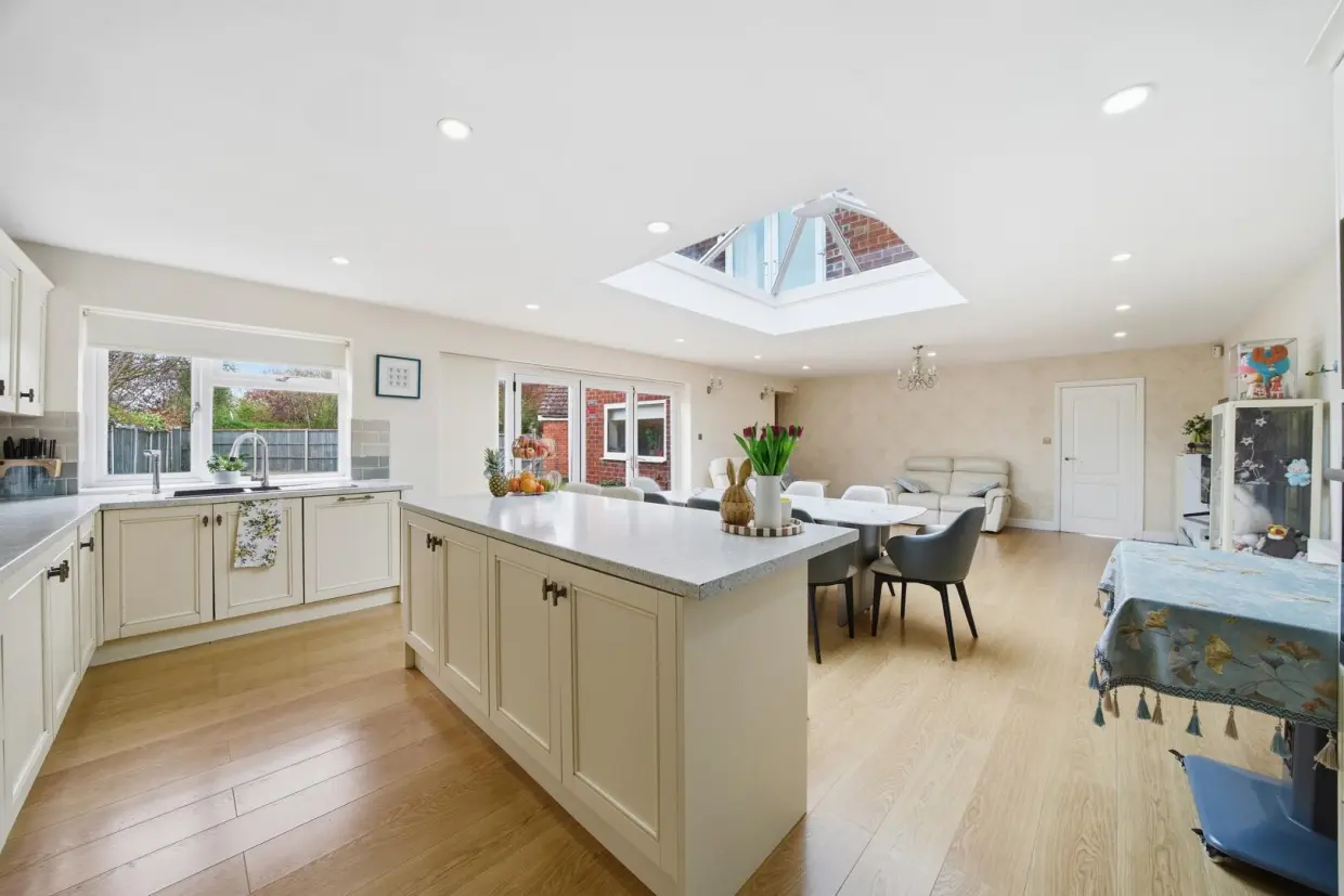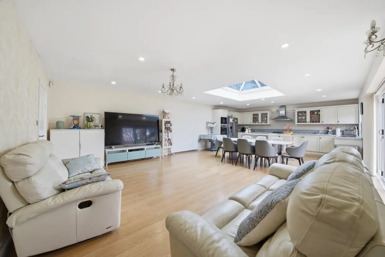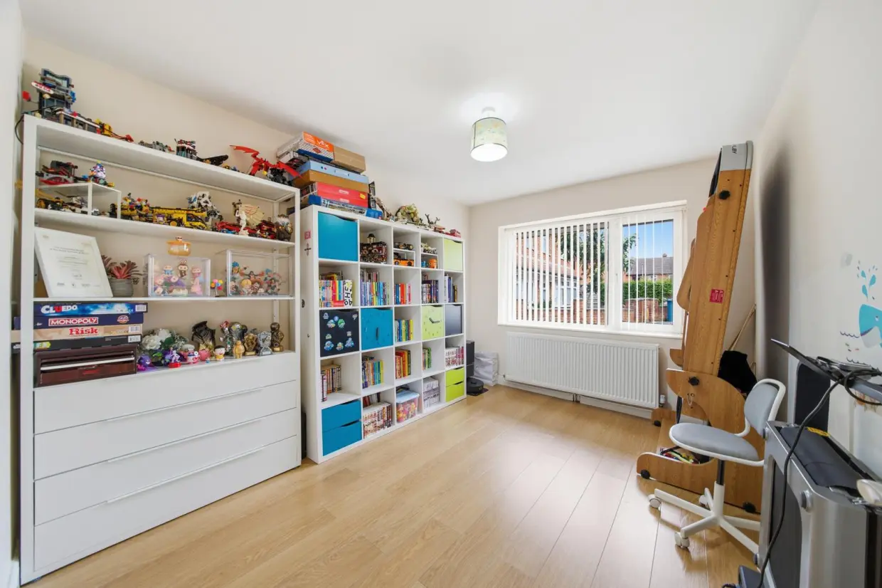 The ground floor is anchored by an impressive open-plan kitchen, dining and family room, forming the natural hub of the home and ideal for modern living and entertaining. This expansive space enjoys excellent natural light and offers ample room for dining, relaxing and social gatherings. Complementing this is a separate living room to the front of the property, providing a more traditional reception space or quieter retreat. Additional ground-floor accommodation includes a useful playroom or office, ideal for families or home working, a utility room and a downstairs WC, ensuring practicality matches the generous living space on offer.To the first floor, the accommodation continues with five well-sized bedrooms arranged around a central landing. The principal bedroom benefits from its own en-suite shower room, while a modern family bathroom serves the remaining bedrooms. The layout provides flexibility for larger families, guests or those requiring dedicated home office space.