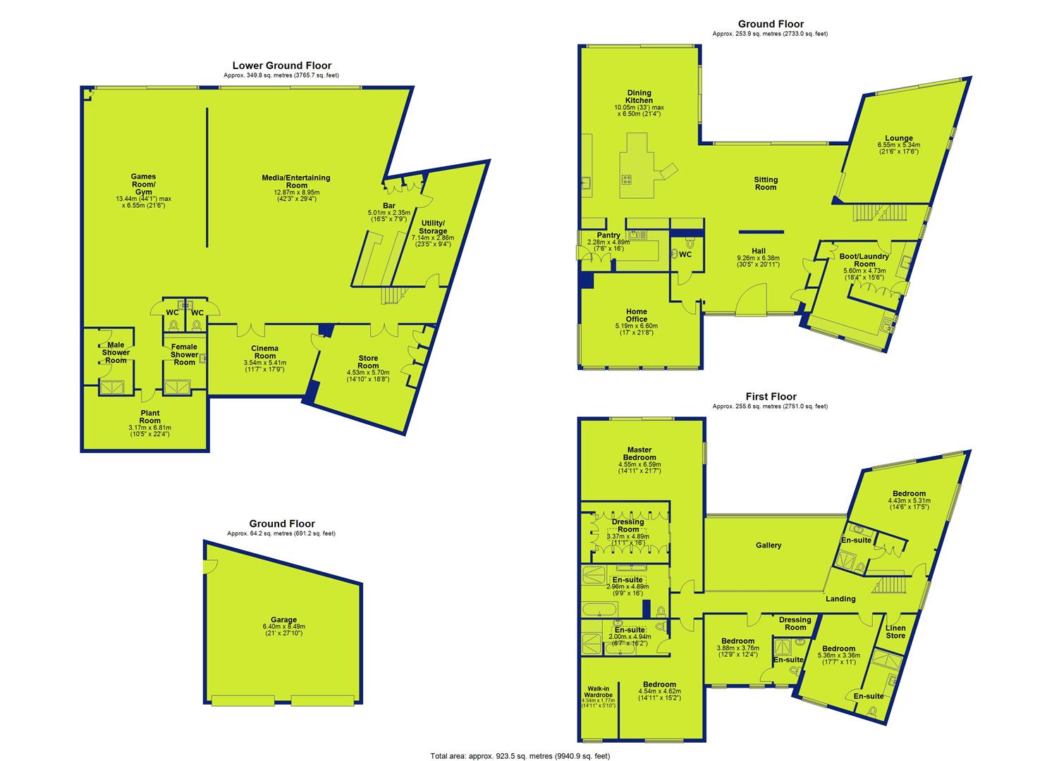 Downstairs, includes a fully equipped bar, wine coolers, integrated appliances, and built-in media/ audio system. A cinema room with LED lighting and projector, a large gym area, male and female shower rooms, 2 large storage rooms and plumbing for a sauna. An expanse of glass sliding doors open out onto a decking area and the garden which make this floor a great space for family or entertaining.