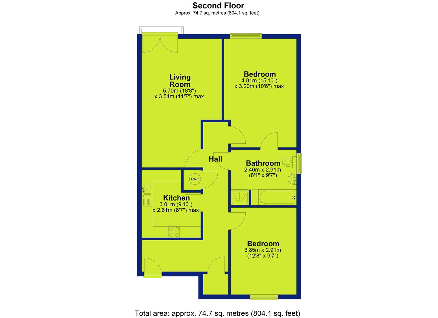 There are two well-proportioned bedrooms, with the master bedroom enjoying the bonus of direct access to the main bathroom.