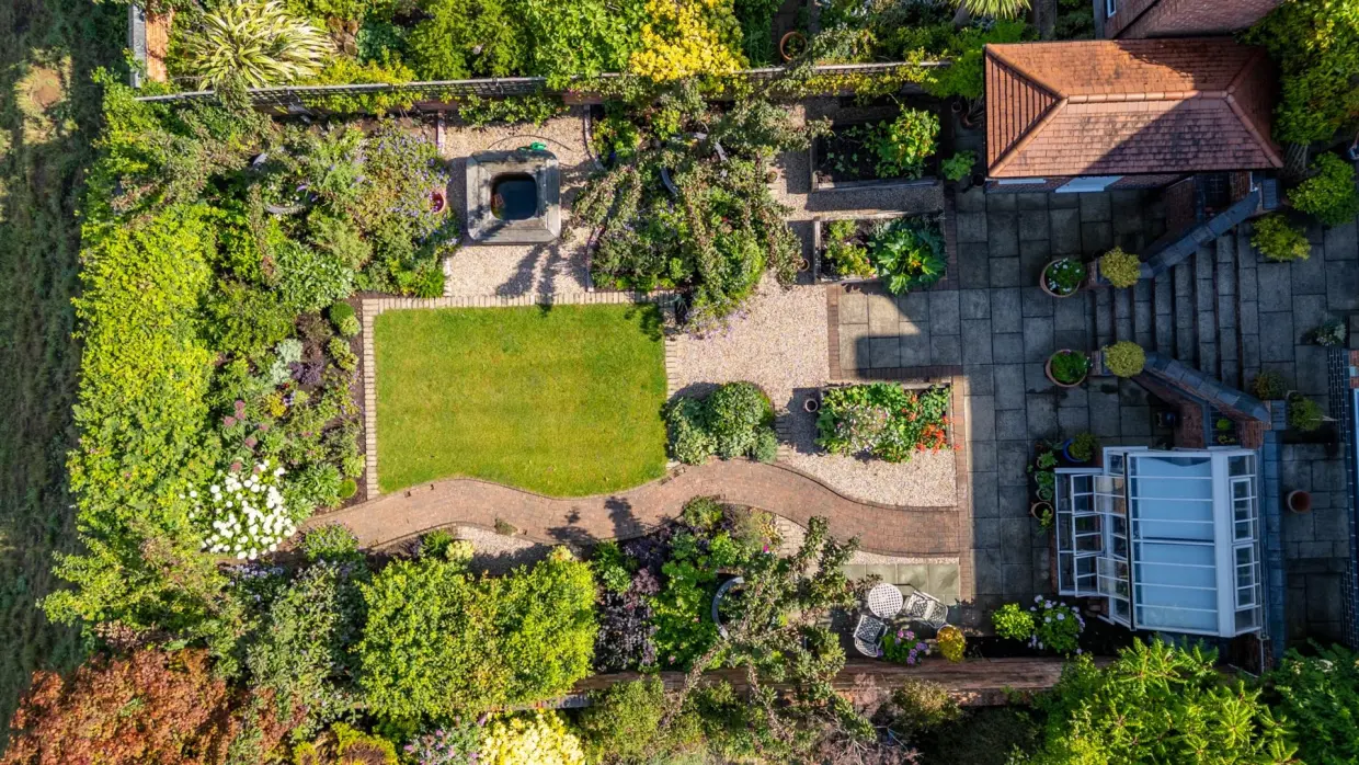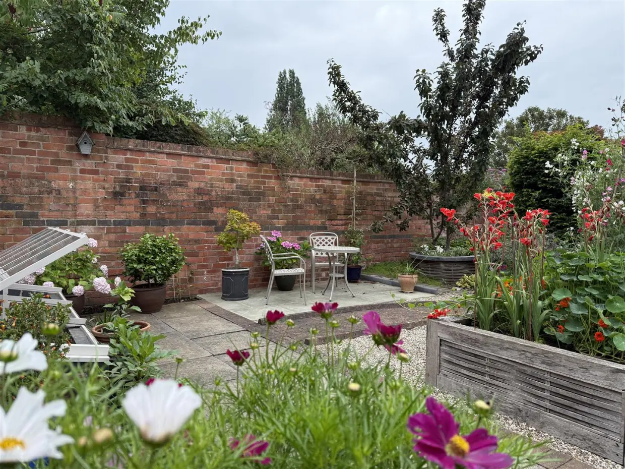 - Landscaped rear garden with lawn, patio, greenhouse, brick store, and off-street parking