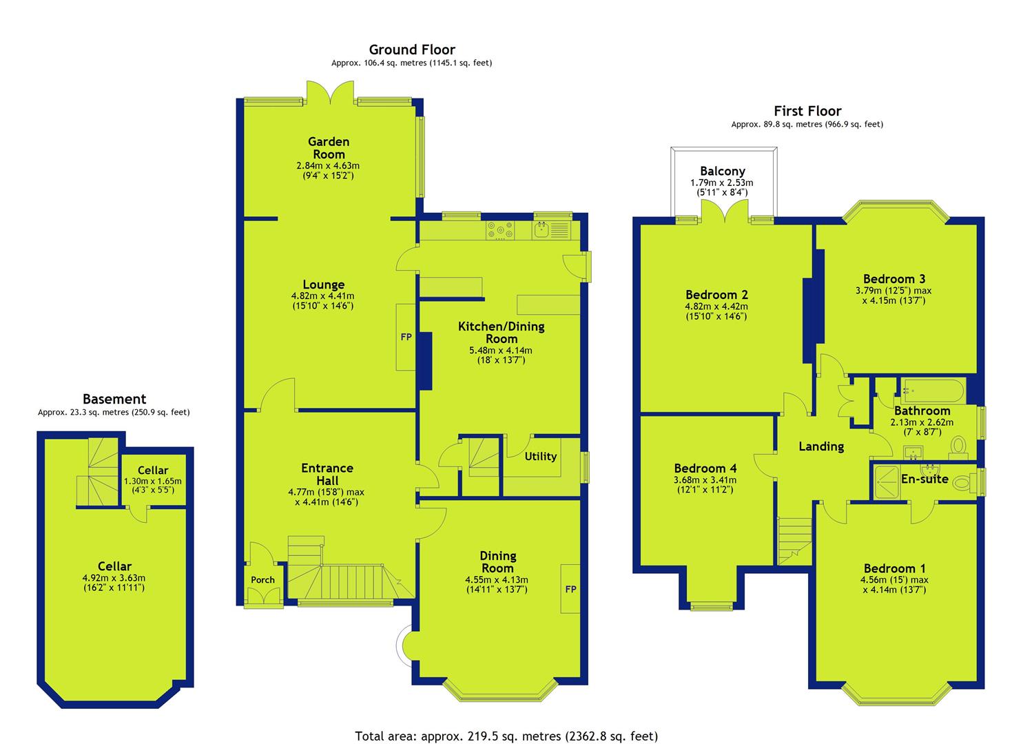 - Internal Area Approx. 2,362 sq ft inc Cellar