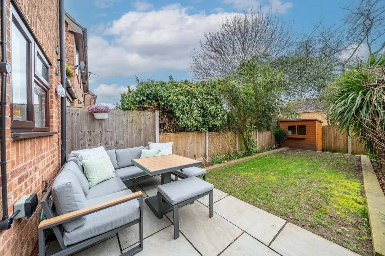 Outside there is off-road parking, accommodating up to two vehicles, along with an electric car charger, catering to modern needs. To the rear, there is a patio area leading to the lawned garden with planters and space for a shed.