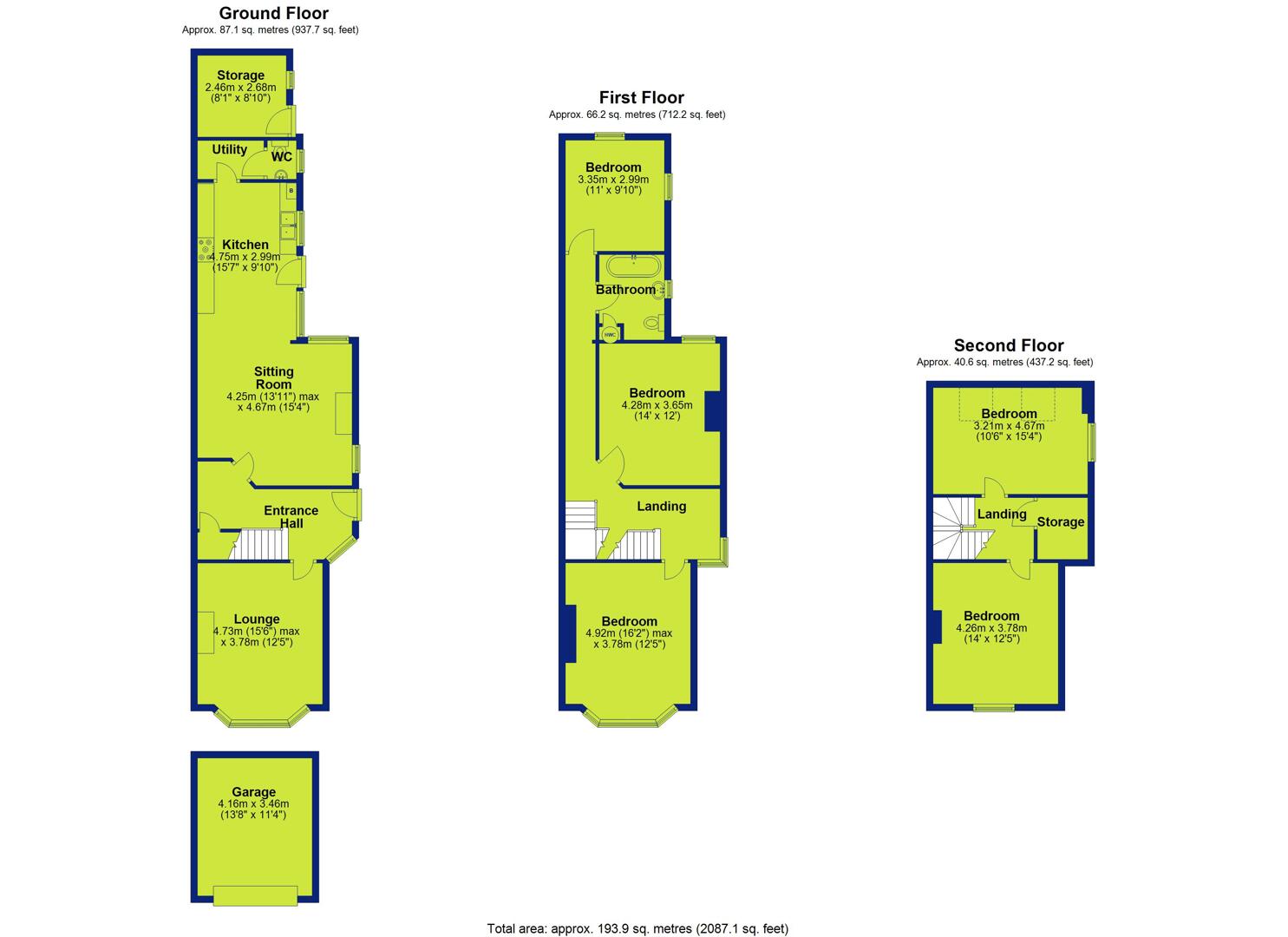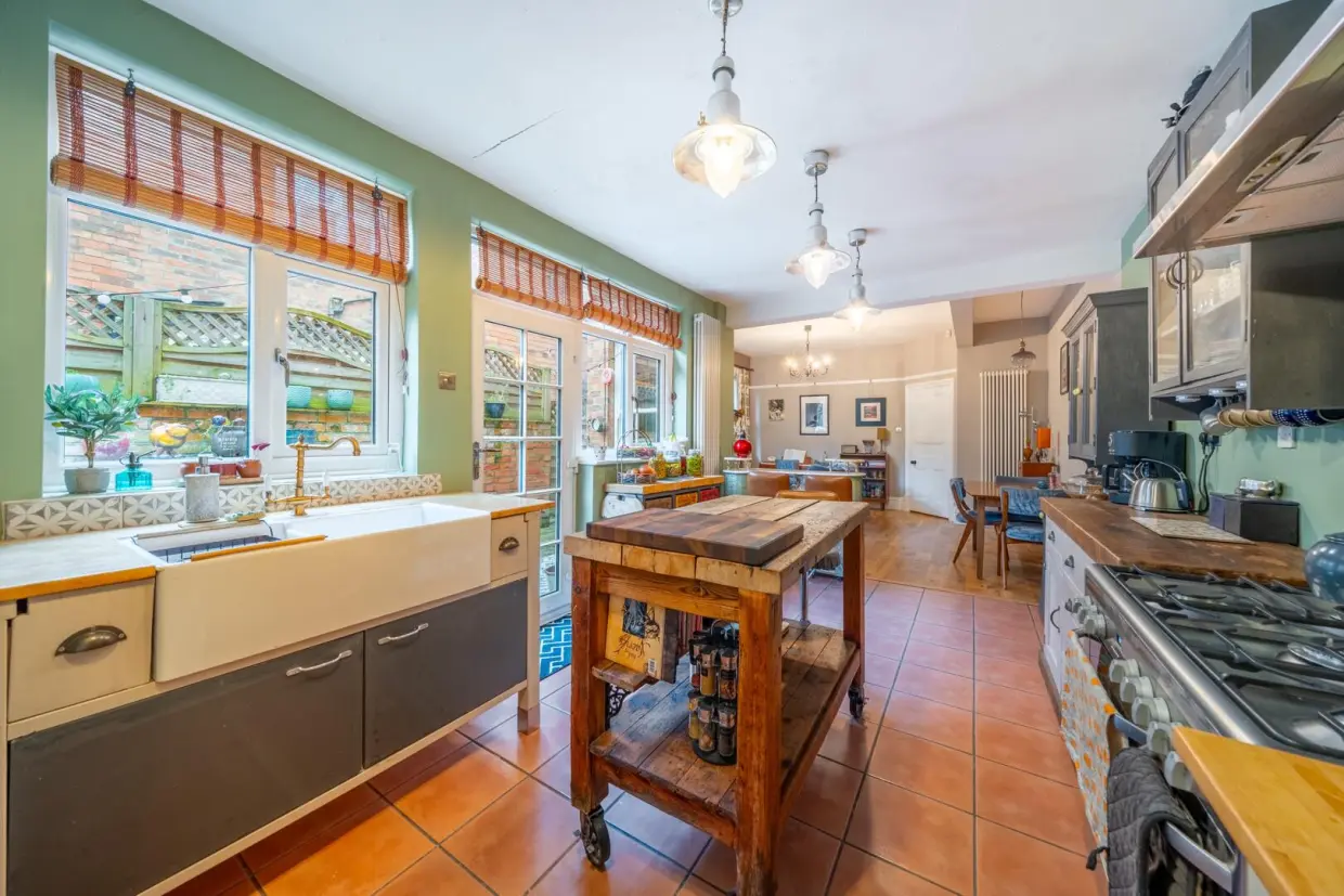 The ground floor includes a welcoming entrance hall, a bright and characterful lounge with bay window, a sitting room that has been opened up to the kitchen overlooking the patio, and a useful utility room, WC, and additional storage.The first floor provides three well-proportioned bedrooms along with a family bathroom, while the second floor offers two further double bedrooms and additional storage, making the home ideal for larger families or those needing work-from-home space.
