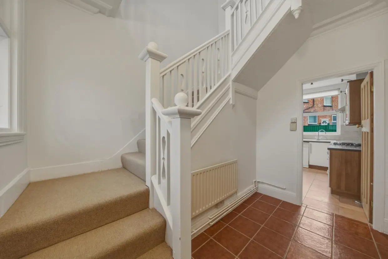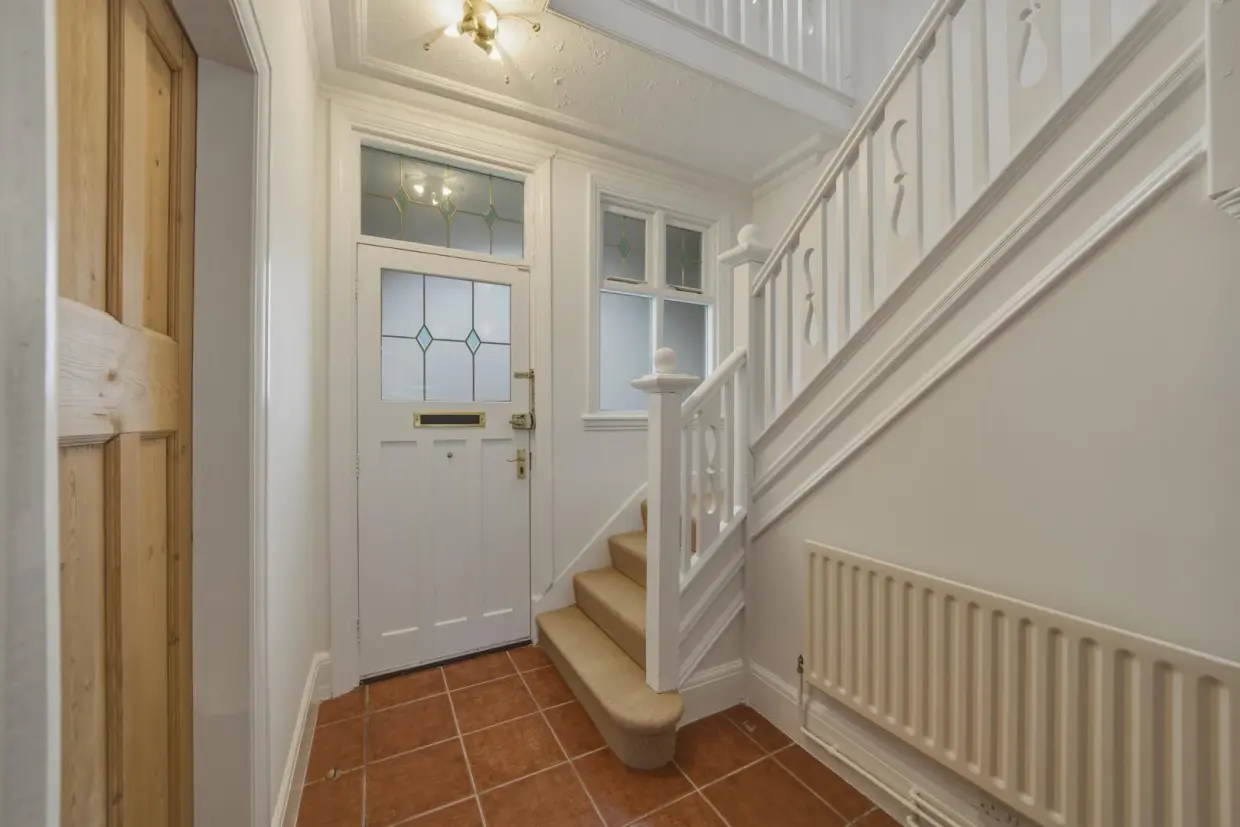 The property is entered via an open entrance porch which leads into a generous reception hallway featuring tiled flooring, stairs rising to the first floor and doors opening into the reception rooms.The front reception room is a good space, featuring a period arched window, stripped wooden flooring, picture rails and a feature fireplace with original surround.