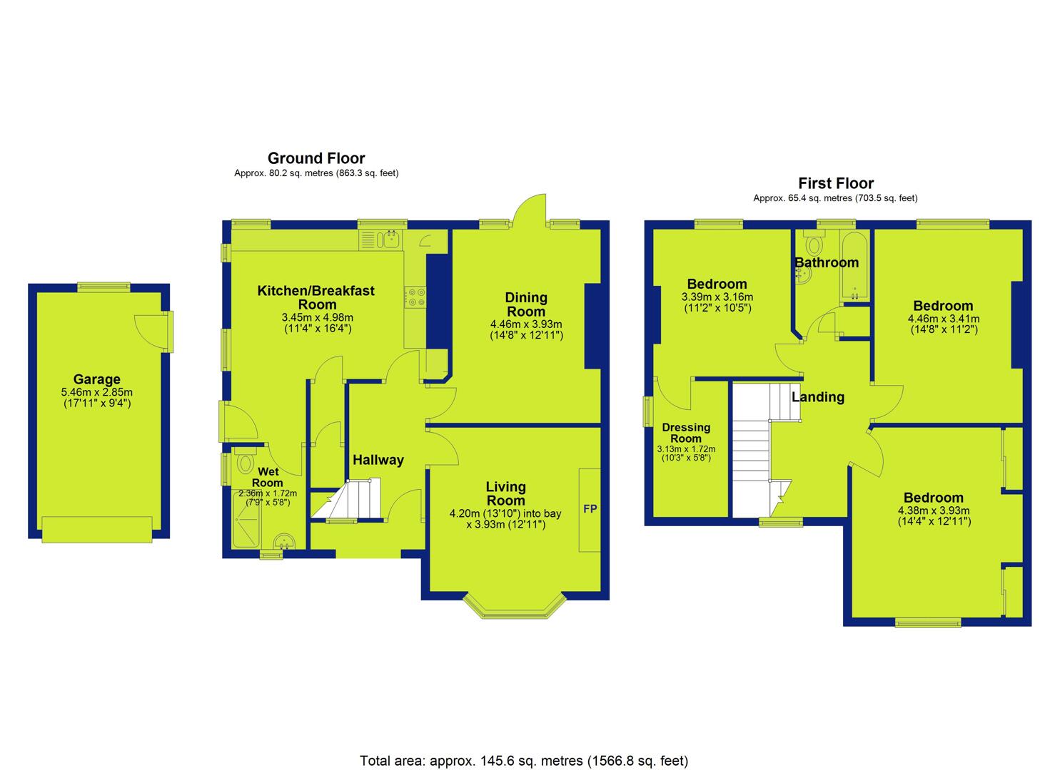 To the first floor, a generous landing provides access to three well-proportioned double bedrooms and a family bathroom fitted with a three-piece suite. One of the bedrooms also benefits from an adjoining dressing room, which could equally serve as a study or home office.