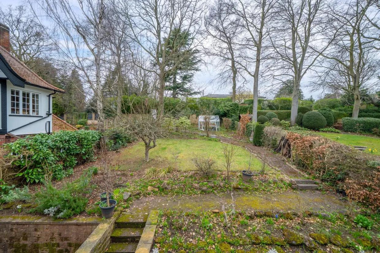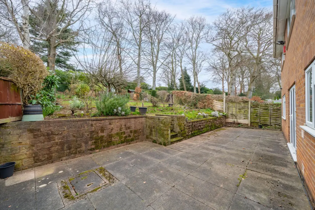 - Landscaped front garden alongside driveway & Mature rear garden with patio areas, rockery pathways, and established plants and shrubs