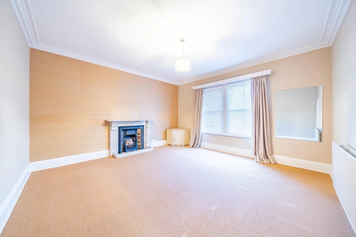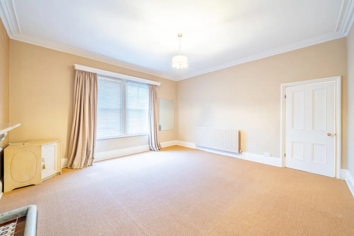 The lounge is undoubtedly the showpiece of the home, a beautifully proportioned room centred around a grand marble fireplace with marble fender and tiling. A large bay window floods the space with natural light and provides sweeping panoramic views across part of The Park, while original cornicing completes the refined aesthetic.