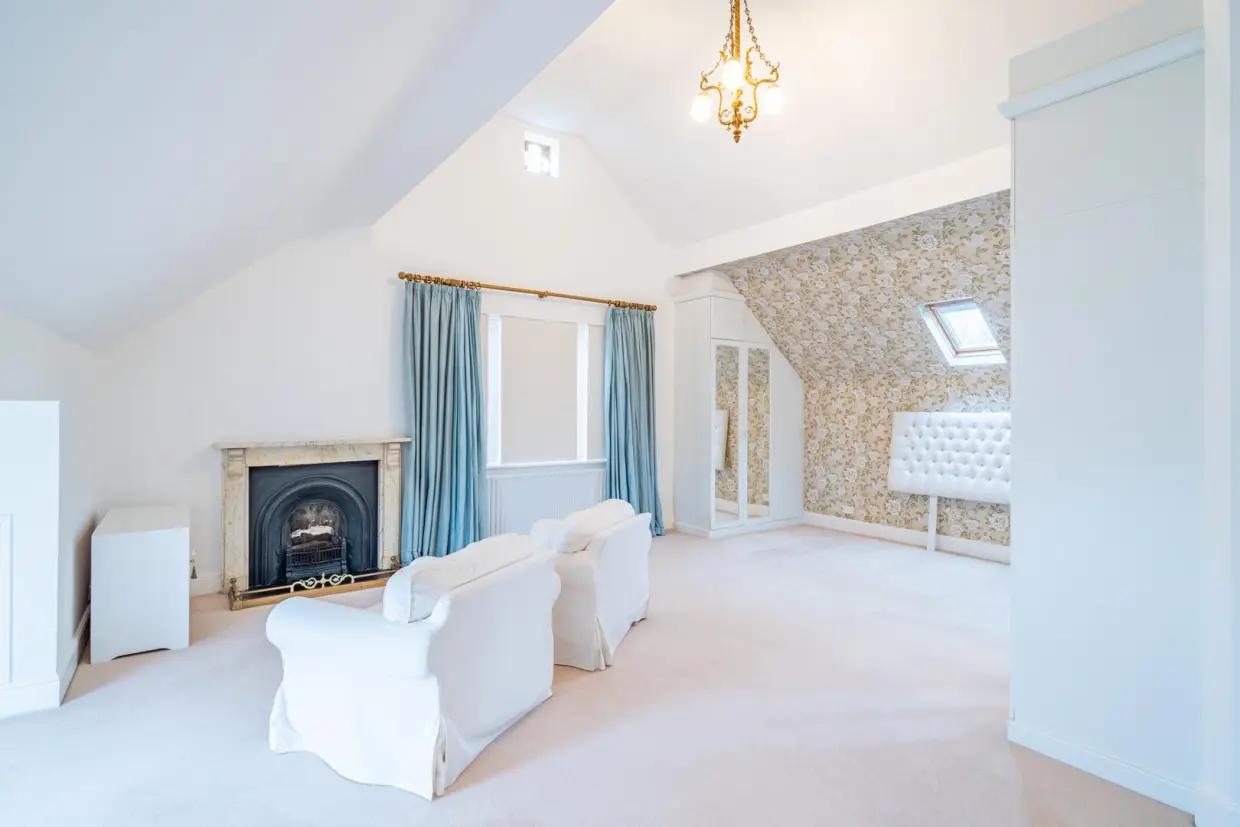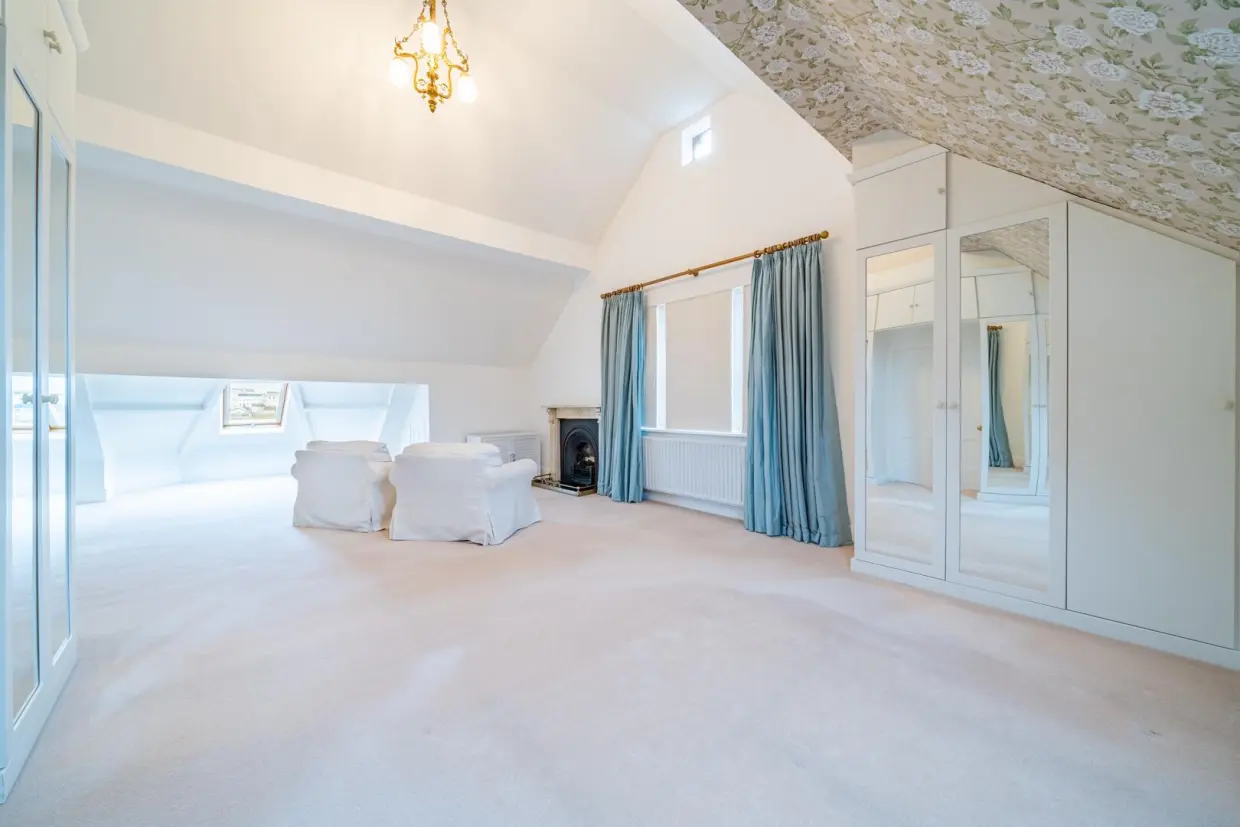 The second floor hosts the bedrooms. The principal suite is a luxurious retreat, enjoying triple-aspect windows, a cathedral-style ceiling, fitted wardrobes, a delightful period fireplace and a classic en-suite shower room.