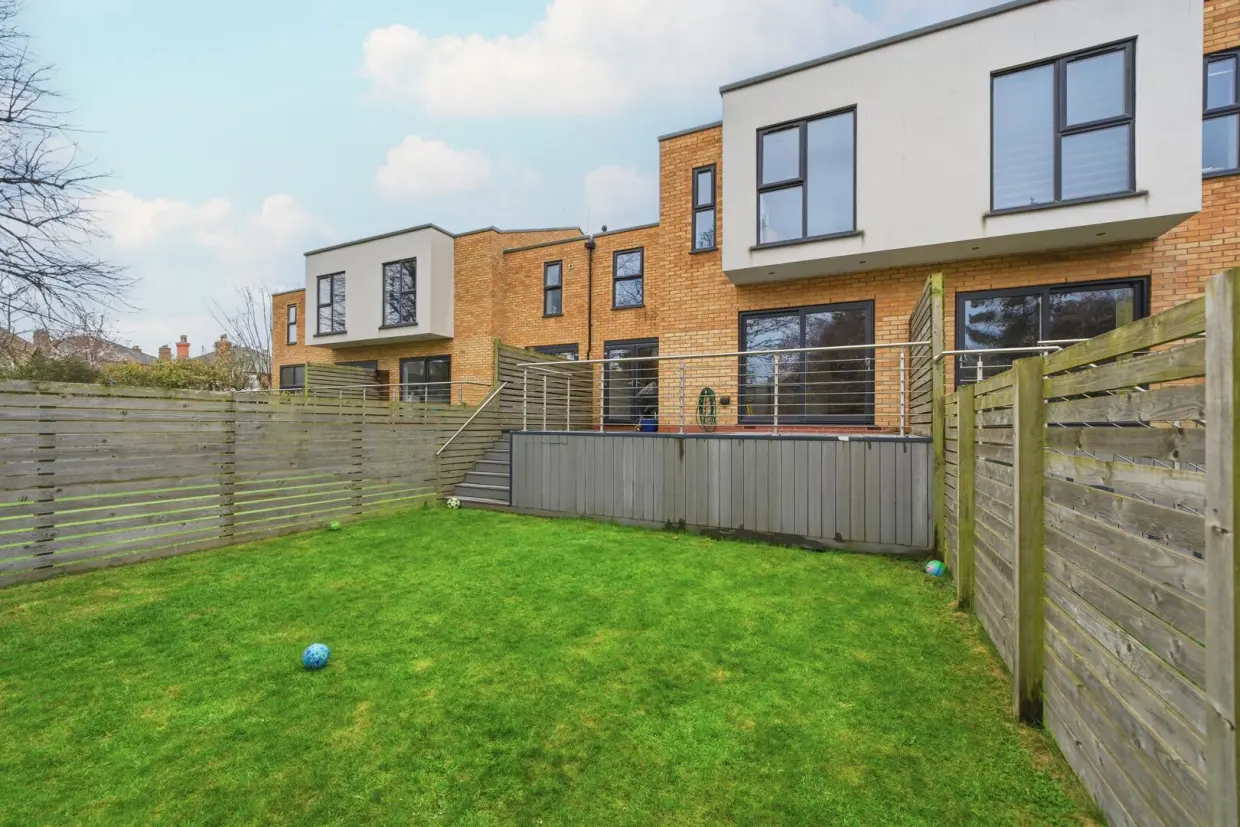 To the rear, the property boasts a generous composite decked area with brushed steel handrails, overlooking the garden. The majority of the garden is laid to lawn, with additional hard standing suitable for a garden shed and planted borders for shrubs.