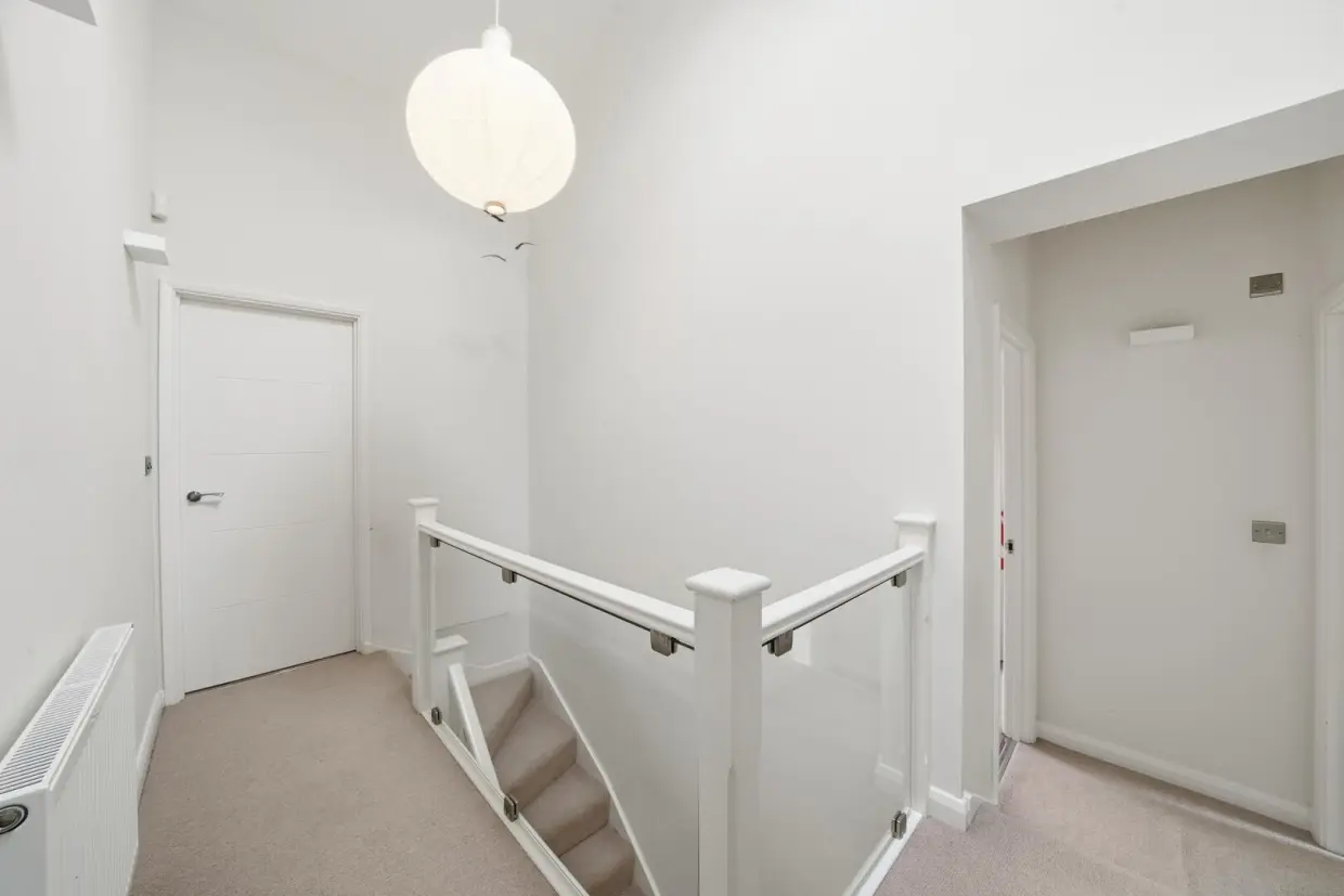 To the first floor, the landing features a vaulted ceiling and a window allowing natural light to flood the space, with doors providing access to three well-proportioned bedrooms, a family bathroom fitted with a modern three-piece suite and utility room, with plumbing for a combi washer-dryer.