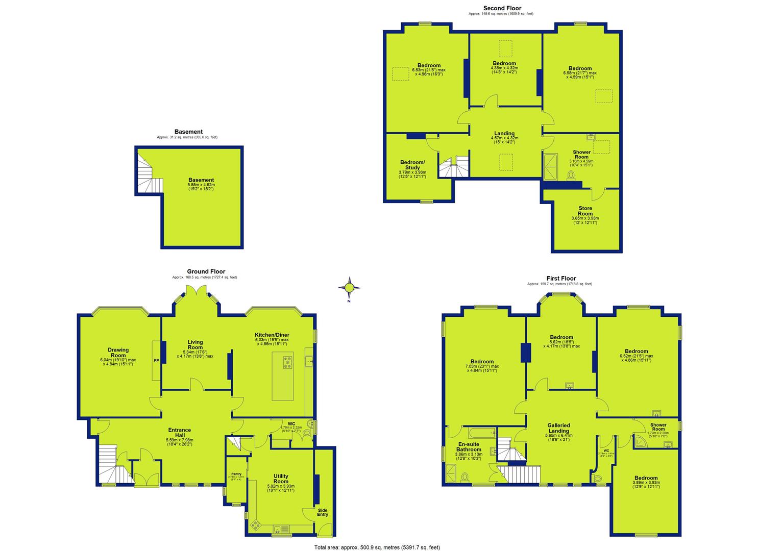 - Seven spacious double bedrooms plus study/home office and ample storage throughout