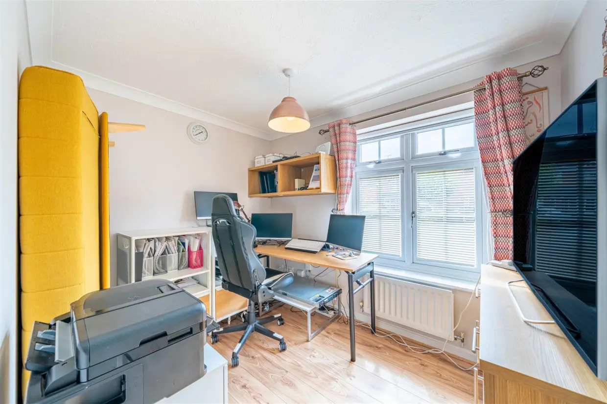 Located on the popular Gamston Development in West Bridgford, this immaculately presented four-bedroom detached family home, built by Bryant Homes, combines generous living space with the rare advantage of a detached garden annex-making it an ideal choice for a growing family.Stepping into the property, you are welcomed by a spacious reception hallway where a staircase rises to the first floor. From here, the ground floor accommodation unfolds beautifully. A modern two-piece suite serves the downstairs WC, while the bright dual-aspect lounge, complete with feature fireplace, marble inset, and gas living flame fire, enjoys both a front-facing window and French doors that open directly onto the rear garden. The dining room, with its attractive double bay window and French doors, connects seamlessly to the kitchen, offering the potential to create a highly desirable open-plan dining kitchen. The kitchen itself is well-appointed with a range of wall and base units, inset sink, integrated extractor, and a window overlooking the garden, while a doorway leads conveniently into the utility room, where the boiler is housed alongside plumbing for laundry appliances. Completing the ground floor is a versatile study or snug, perfectly suited as a home office or an additional bedroom.