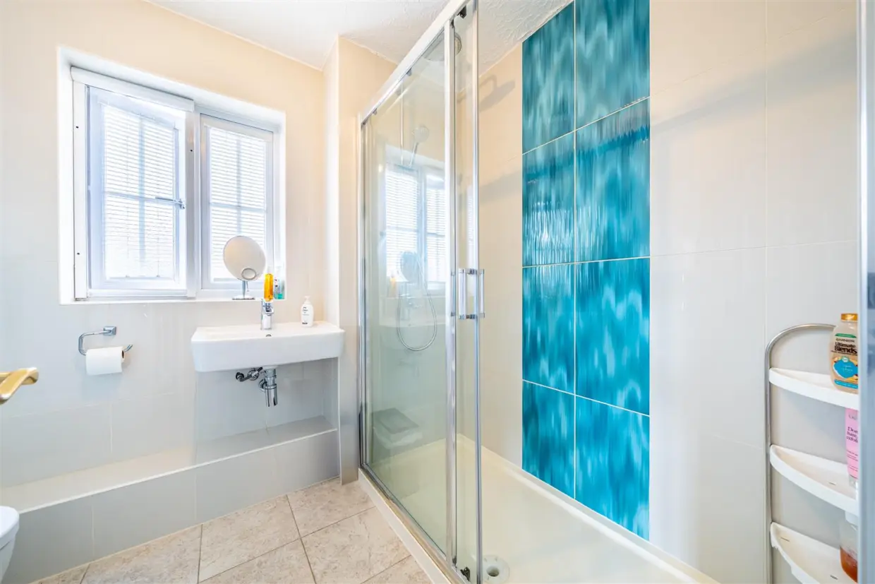 Upstairs, the generous landing leads to four well-proportioned bedrooms and a stylish family shower room. The main bedroom enjoys its own en-suite bathroom, while the remaining bedrooms are served by the modern shower room, all designed with both comfort and practicality in mind.