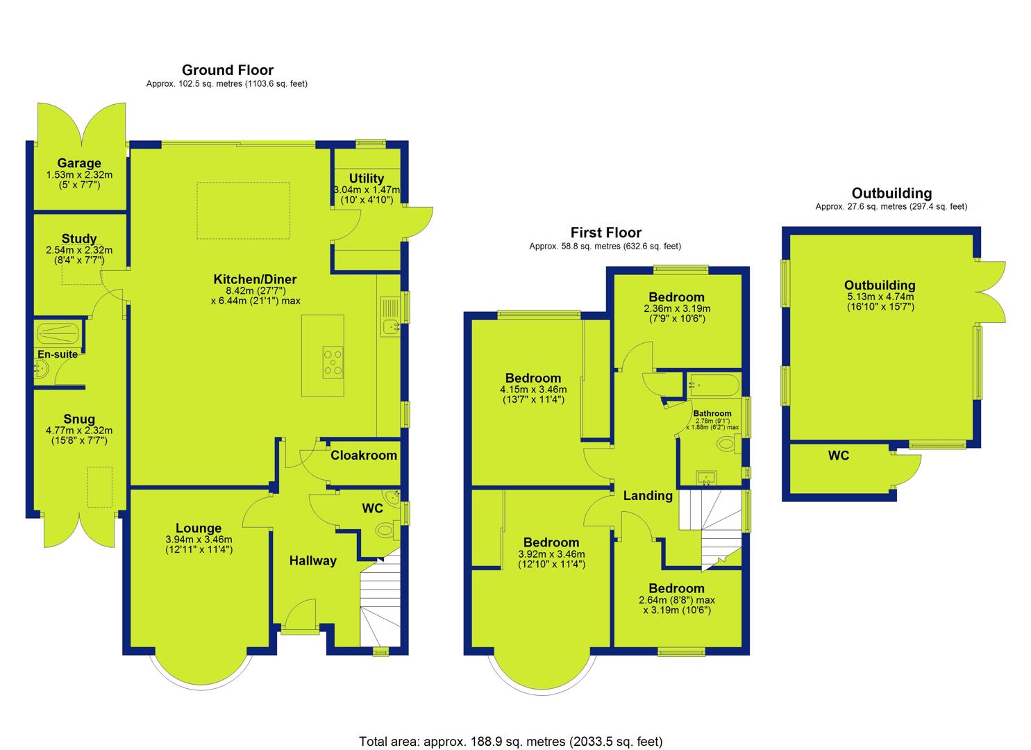 - Family bathroom, en-suite and WC