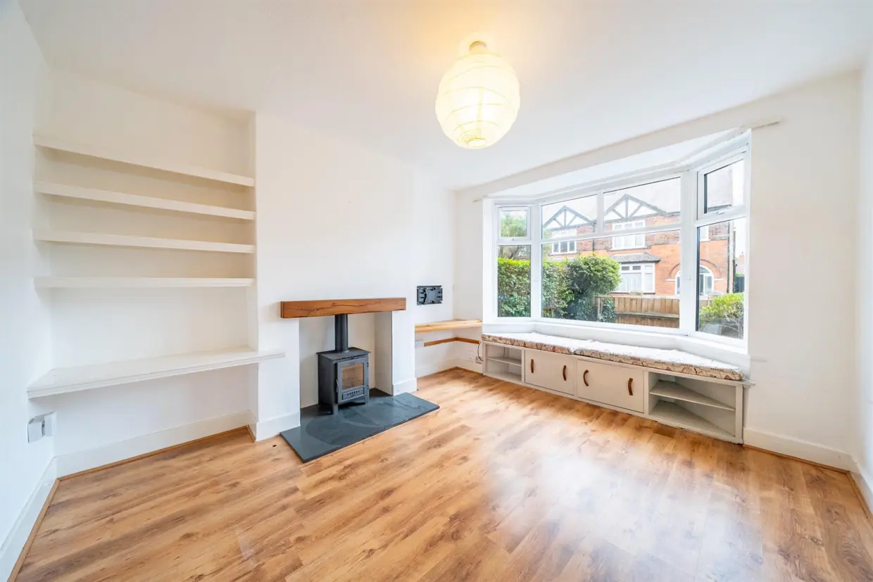 To the front, the lounge features a bay window with window seat, bespoke fitted storage, and a cast-iron log burner set on a tiled hearth with shelving to the side, creating a charming focal point. To the rear, the kitchen and dining room have been opened up to form a spacious open-plan living and dining area, ideal for relaxing and entertaining. The kitchen is fitted with a range of wall and base units, central island with breakfast bar return, integrated oven with hob and extractor, and space for a washing machine and fridge-freezer. A dining area with built-in storage overlooks the garden and could easily be enhanced by the addition of French doors to provide direct access outside.