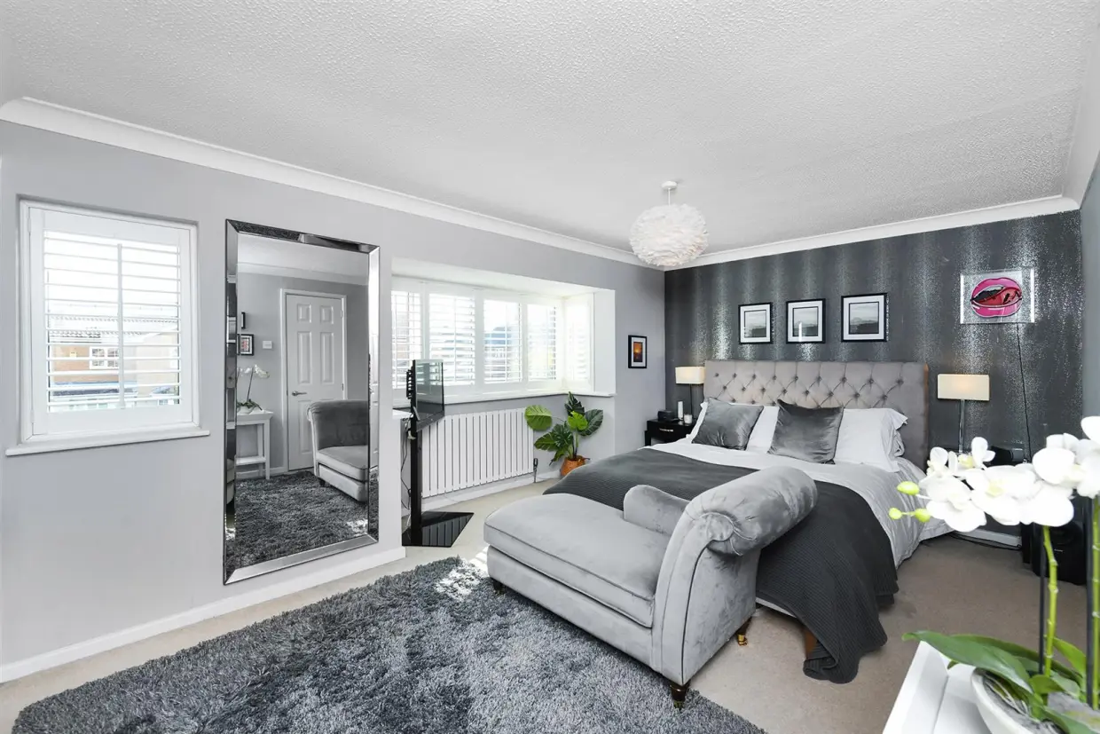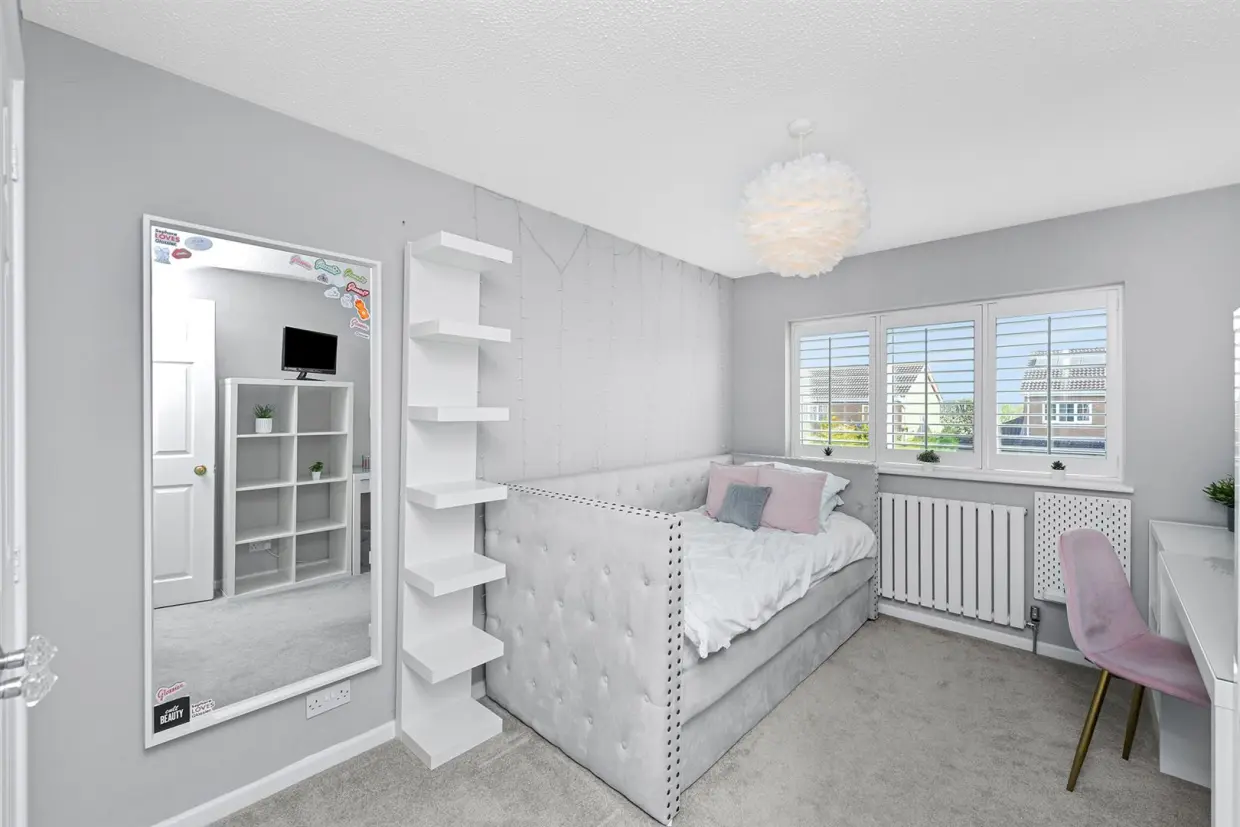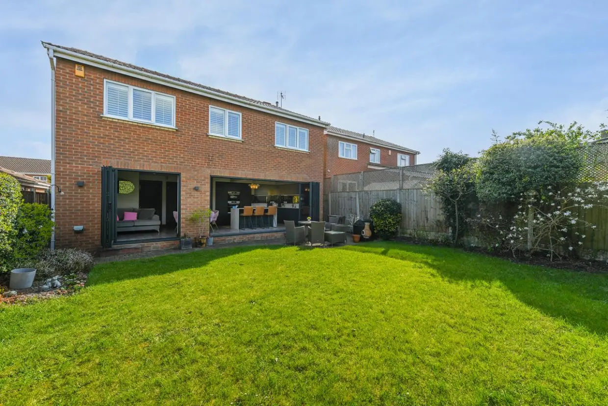 Outside, the property boasts a large, well-maintained south-west facing rear garden with a combination of lawned and patio areas, perfect for outdoor entertaining. To the front, there is a further garden and ample driveway parking.