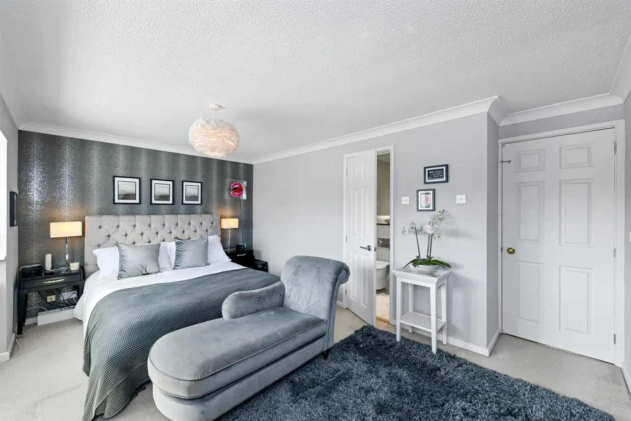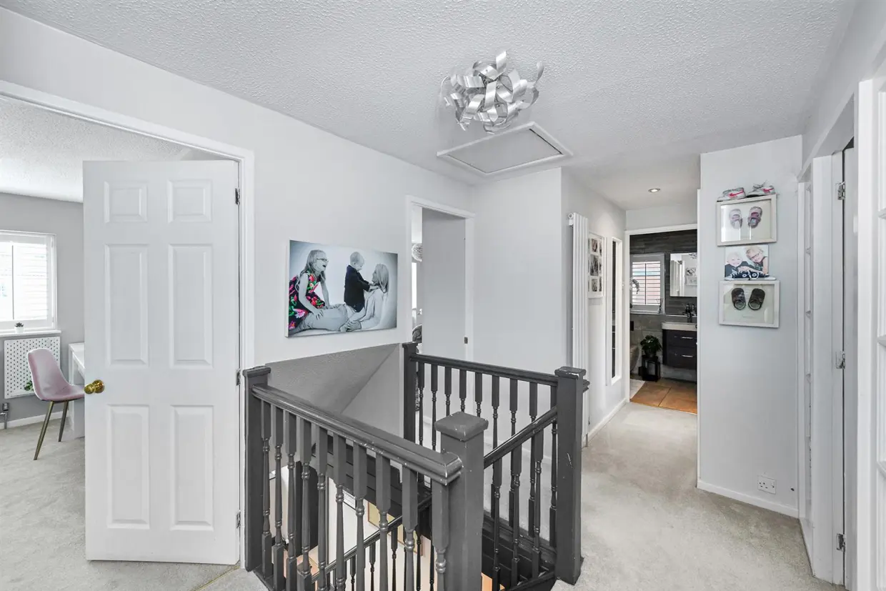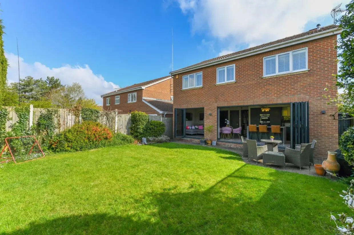 Upstairs, you’ll find five well-proportioned bedrooms. Four are generous double rooms with fitted wardrobes, while the fifth bedroom with fitted wardrobes, is currently configured as a study, but ideal as a nursery, playroom, dressing room or hobby room. The master bedroom benefits from its own en-suite bathroom, featuring a luxurious power shower and the remaining bedrooms are served by a modern family bathroom.