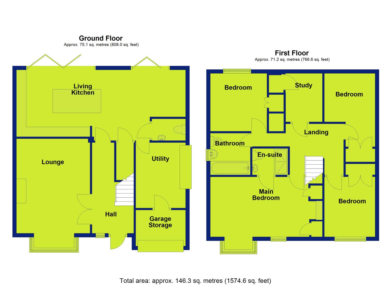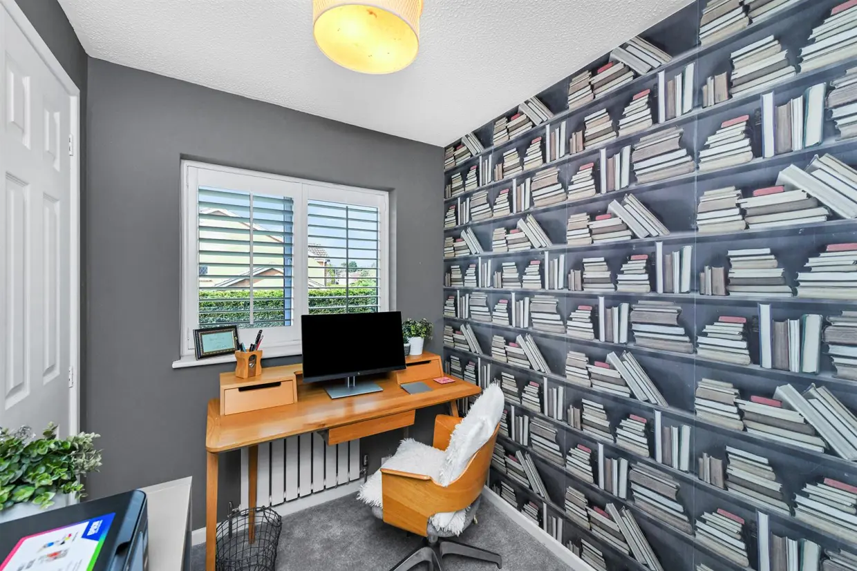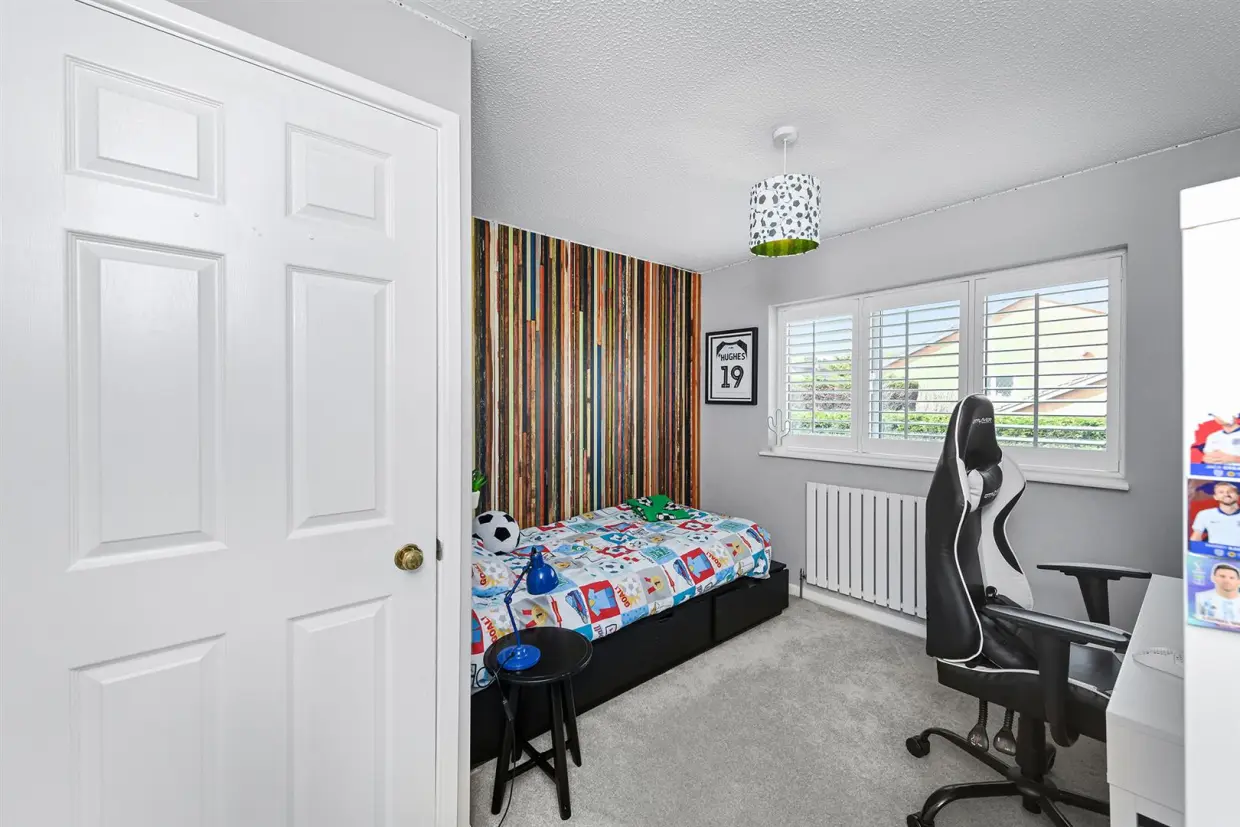 Upstairs, you’ll find five well-proportioned bedrooms. Four are generous double rooms with fitted wardrobes, while the fifth bedroom with fitted wardrobes, is currently configured as a study, but ideal as a nursery, playroom, dressing room or hobby room. The master bedroom benefits from its own en-suite bathroom, featuring a luxurious power shower and the remaining bedrooms are served by a modern family bathroom.
