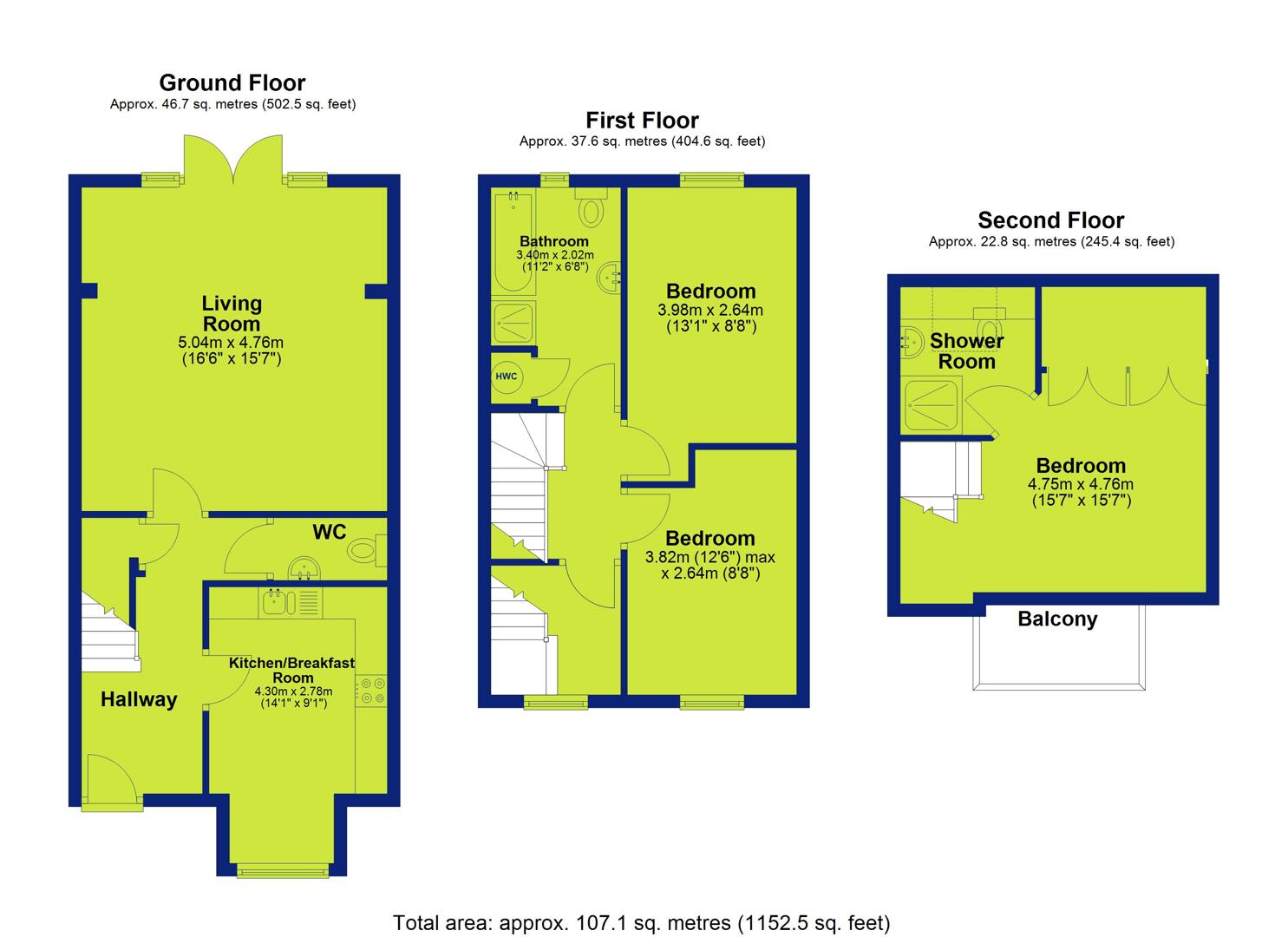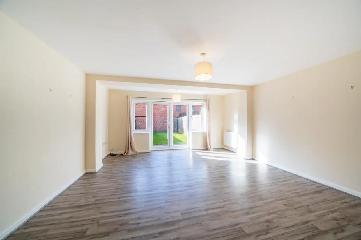 The ground floor welcomes you with a spacious hallway leading into a well appointed kitchen/breakfast room, a convenient WC, and an impressive living room that spans the full width of the property, complete with French doors opening onto the rear patio. The first floor provides two comfortable bedrooms alongside a family bathroom, while the top floor boasts an expansive master bedroom with an en-suite shower room and access to a private balcony, enjoying attractive views.Outside, the property features a driveway and garage. The rear garden includes a patio—perfect for relaxing or entertaining—and a lawned area backing with access to the drive and garage. This is an ideal home for buyers seeking space, convenience, and a move ready opportunity.