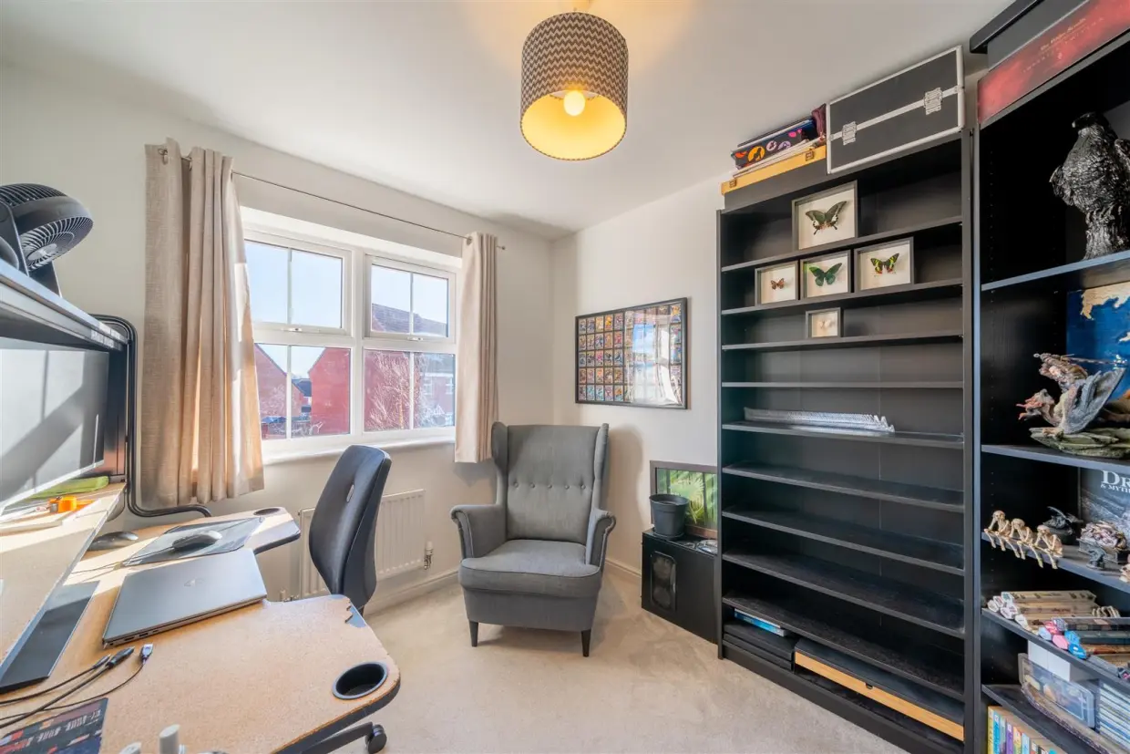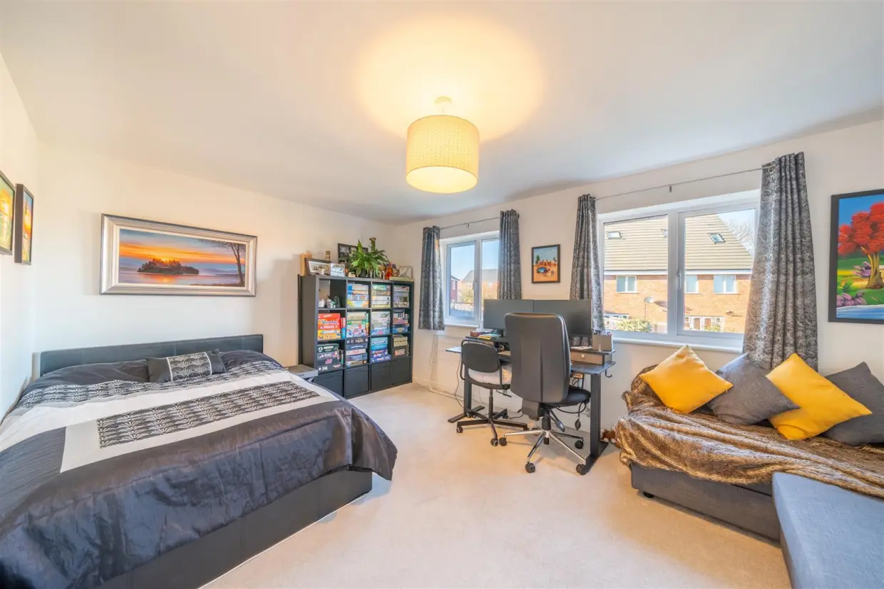 On the first floor, you will find two generously sized double bedrooms served by a contemporary three-piece family bathroom. The second floor is dedicated to the impressive master bedroom, featuring built-in sliding wardrobes and a private ensuite shower room.