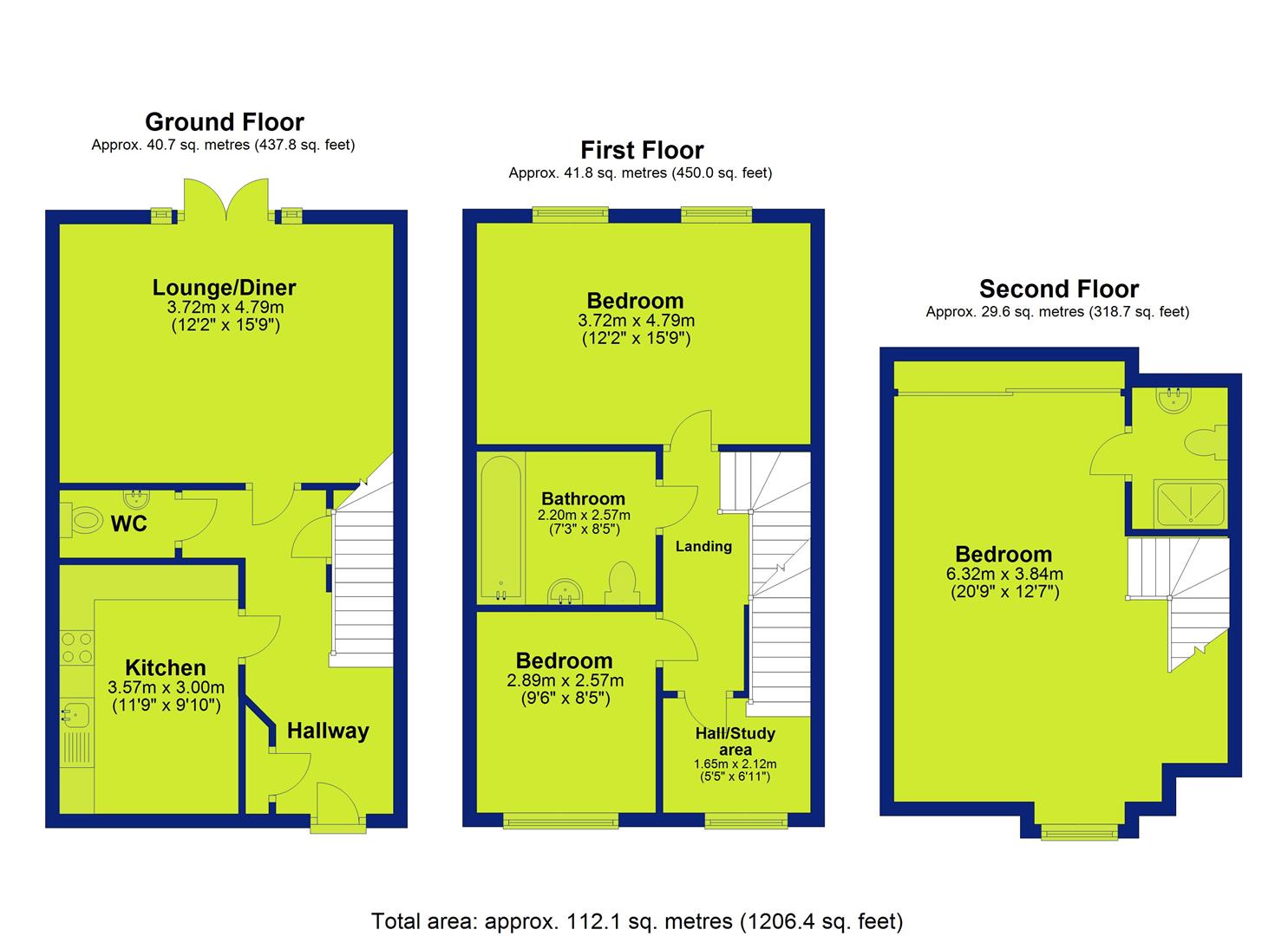 - Three bedrooms