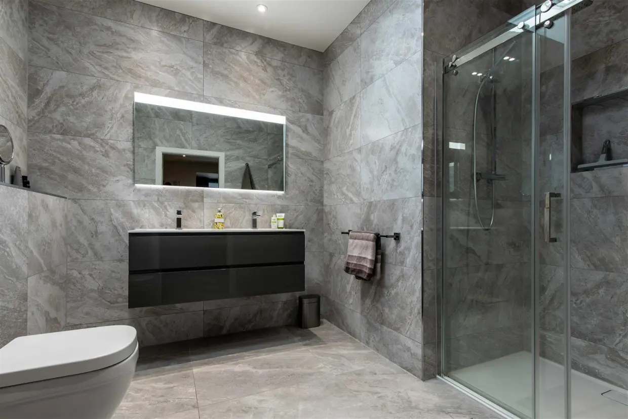 The sleeping quarters are as serene as they are spacious. The principal suite is a true retreat, complete with a dressing room and a sumptuous en-suite shower room. The second bedroom boasts built-in wardrobes and shares a chic Jack-and-Jill en-suite with the third bedroom - ideal for guests or family. Need flexibility? A stylish home office can effortlessly transform into a fourth bedroom, enhanced by its own access to the main bathroom - a sanctuary of modern luxury.