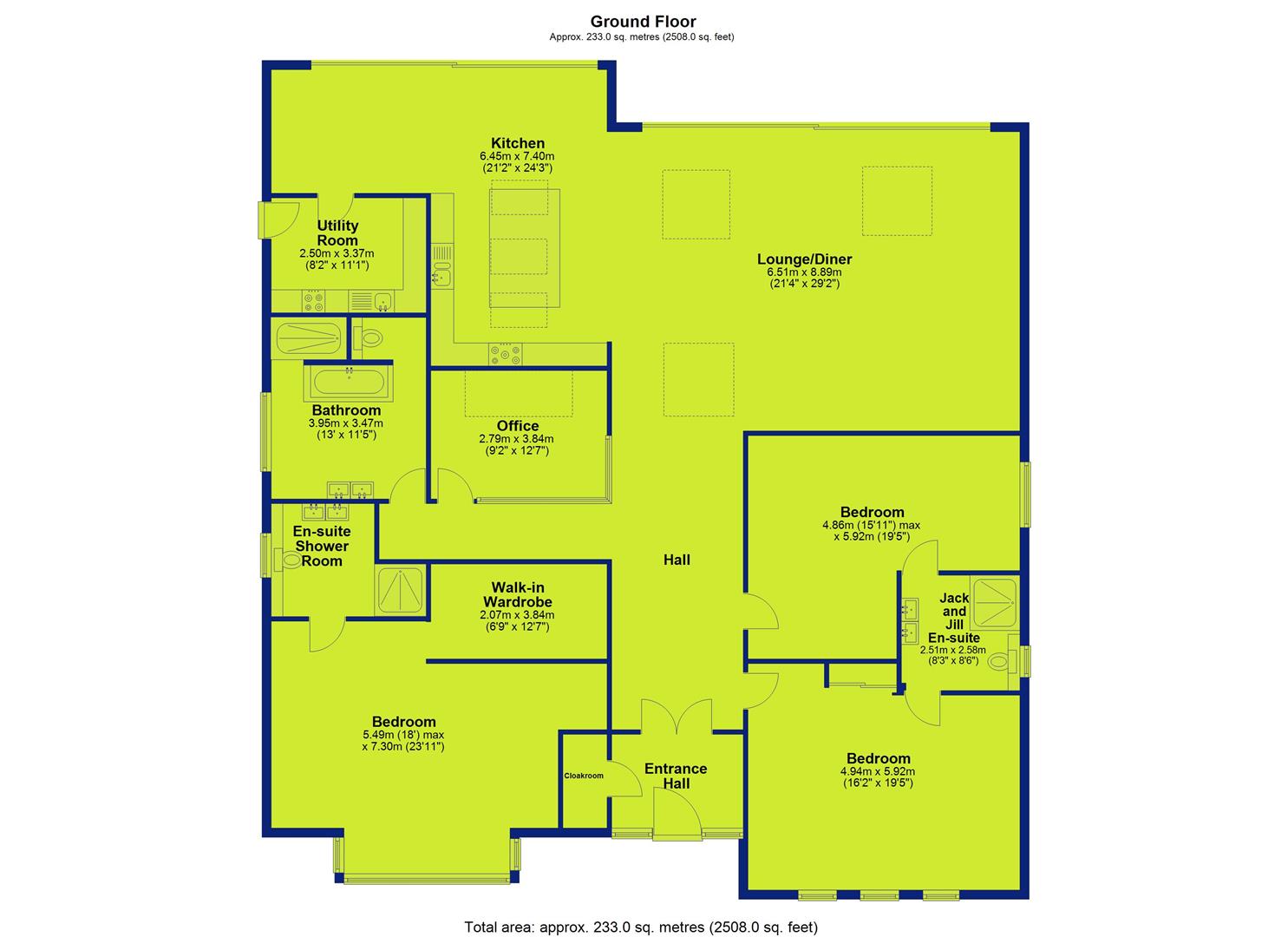 Step into the rare luxury of single-storey living in one of the area's most sought-after locations. This striking new build is a modern architectural marvel - sprawling across nearly 3,000 square feet of meticulously designed space. Rarely do homes of this calibre and convenience come to market, as developers often build upwards to maximise value. Here, however, style, substance, and serenity take centre stage.Crafted for those looking to downsize without compromise - or simply seeking sleek, contemporary living with designer flair - this home is set on a generous plot and brims with intelligent design. With an outstanding EPC rating of B (86/90) and the comfort of underfloor heating throughout, it blends energy efficiency with everyday indulgence.