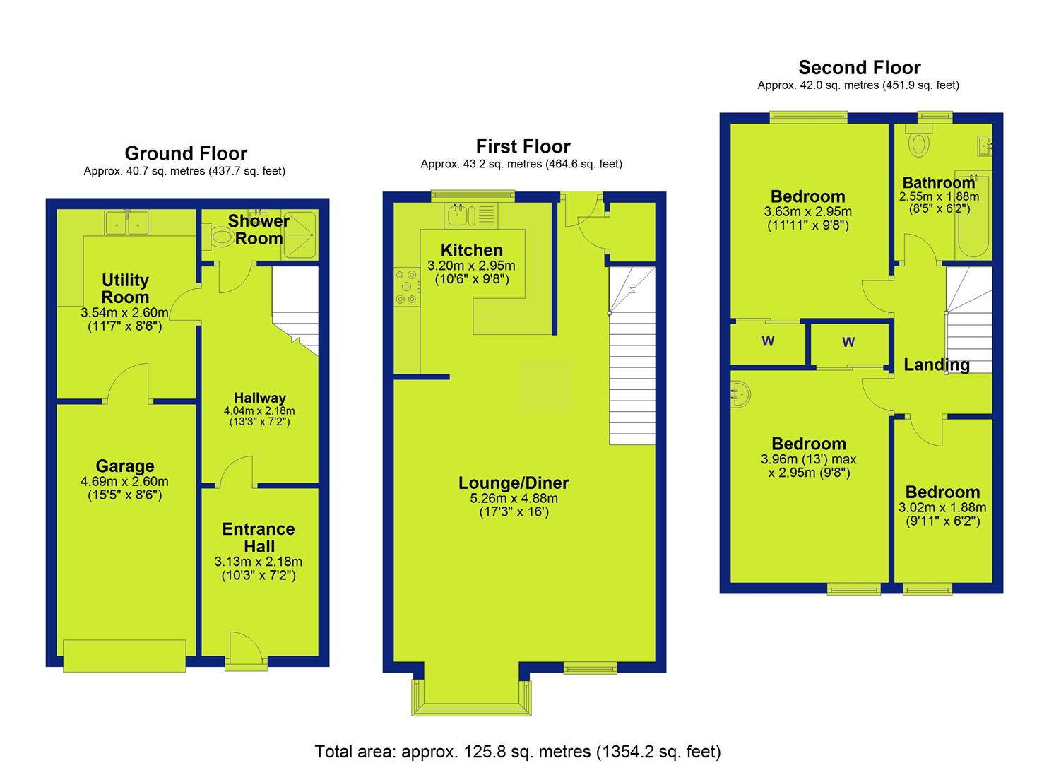 - Freehold - Approx. 1,350 sq ft inc Garage & internal space