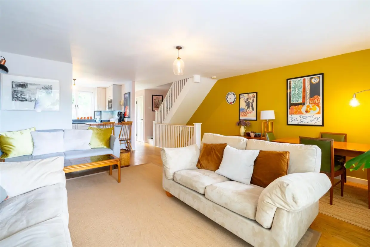 - First-floor open-plan lounge/kitchen with classic units & modern appliances