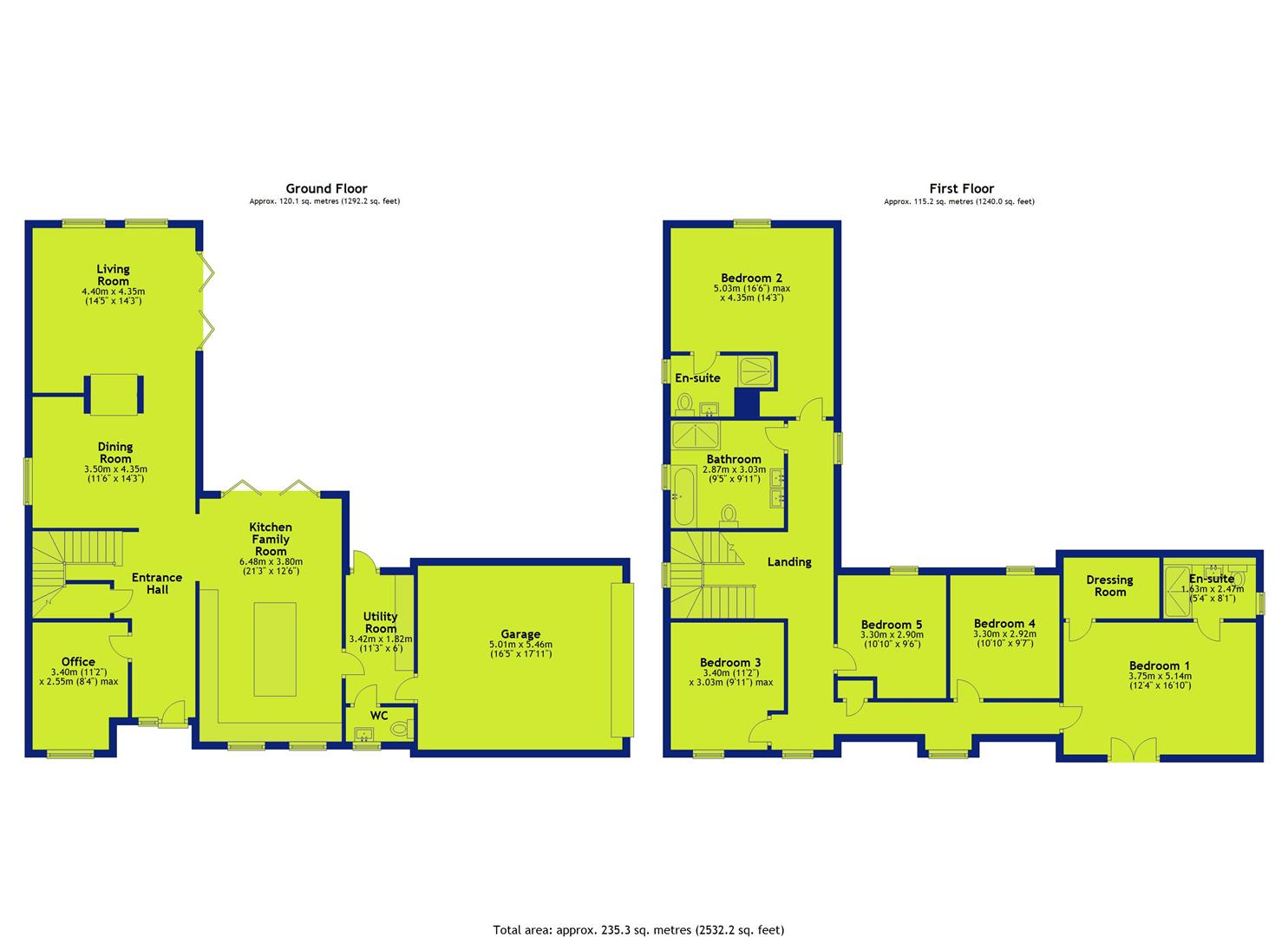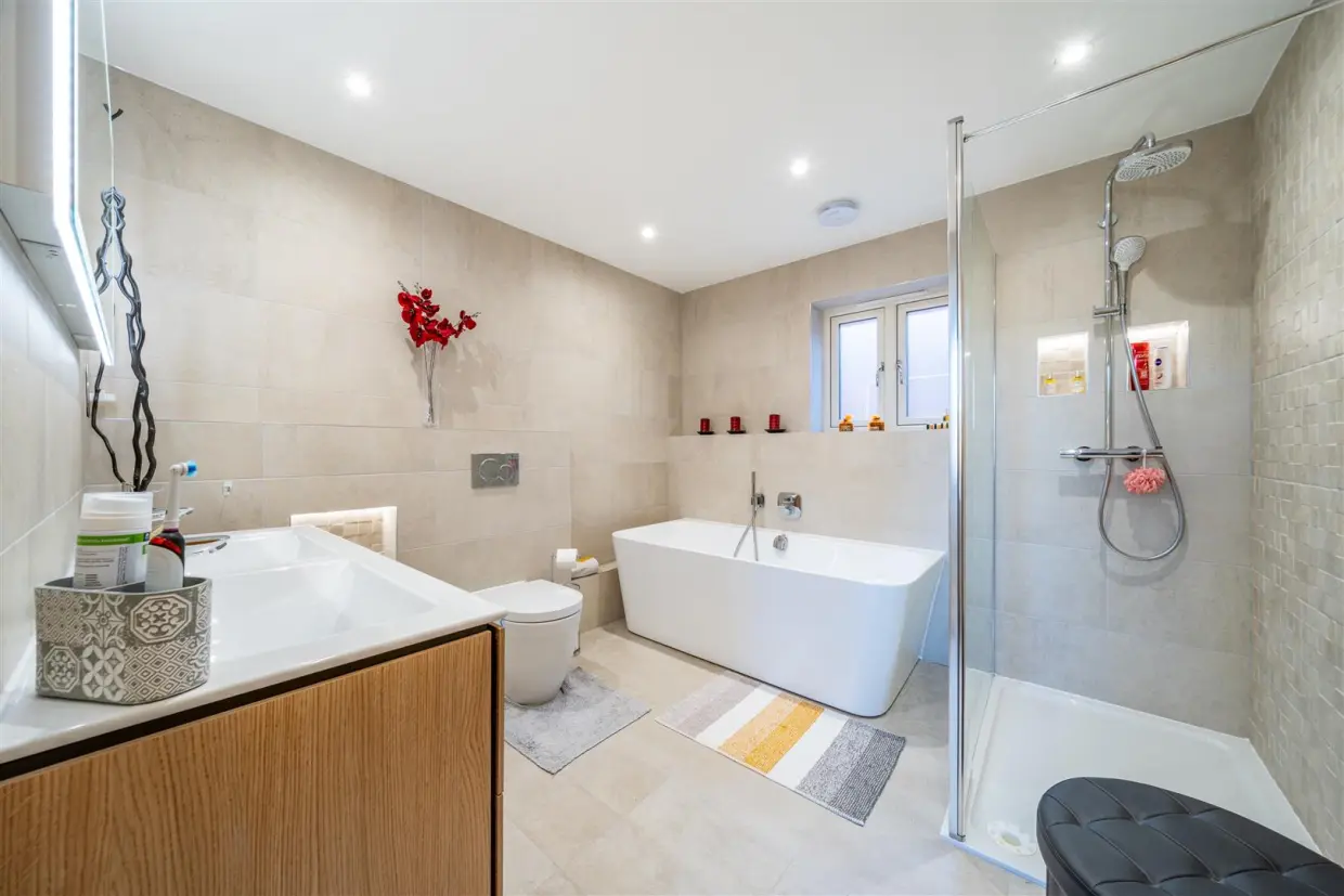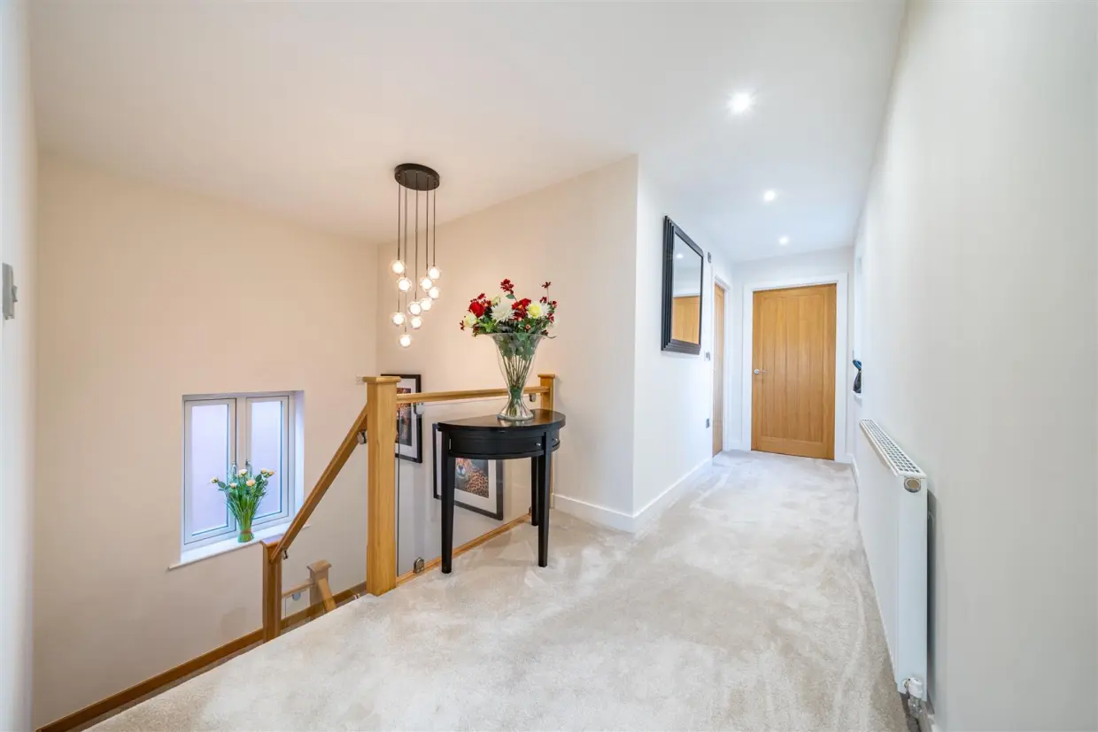 Upstairs, a spacious landing leads to all five well-proportioned bedrooms and the main family bathroom. The luxurious master suite impresses with its Juliet balcony, dedicated dressing room and private en-suite. Another bedroom also benefits from its own en-suite, while the remaining rooms offer excellent versatility for family, guests or hobbies.