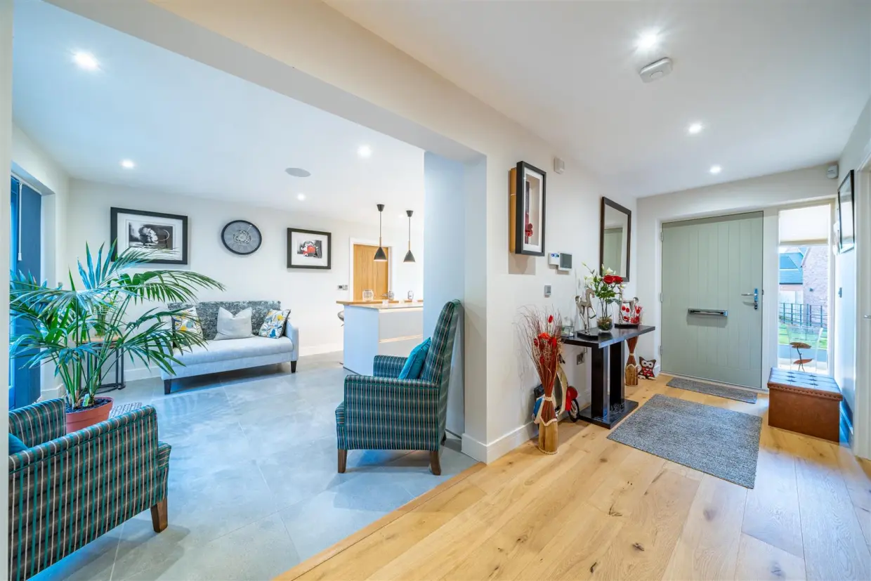 Step through the secure gates and into an exclusive Wysall address, this impressive five-bedroom detached home is designed for modern, luxury living.The moment you enter, a bright open reception hallway sets the scene. To the front, a dedicated home office provides the ideal working space. Flowing from the hall, the open dining and living area forms the social heart of the home, a generous, light-filled space featuring a striking central log burner, multiple windows and direct access onto the garden, perfect for hosting or unwinding.