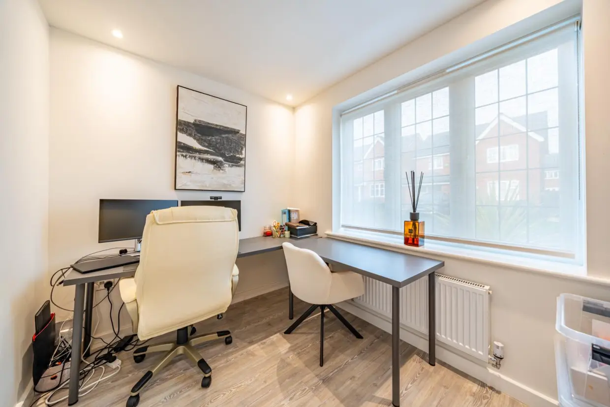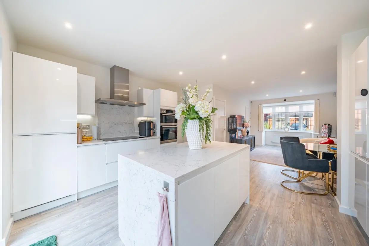 The ground floor features a welcoming entrance hallway, a convenient WC, and a useful utility cupboard. There is a versatile office/snug, ideal for working from home, and a spacious living room with a built-in media wall and doors opening onto the patio, creating a perfect flow for indoor-outdoor living. At the heart of the home lies a stunning kitchen, living, dining area, designed for both entertaining and everyday family life. Upstairs, the property boasts four generously sized bedrooms, including a master suite with a private en-suite, alongside a modern family bathroom, providing plenty of space for family and guests. Outside, the property boasts a south-facing garden with a landscaped patio and a sunken seating area, offering a private and tranquil space to relax. A driveway for two cars leads to a single garage, providing convenient parking and storage. The location offers the perfect balance of peaceful suburban life with excellent connectivity. Residents enjoy proximity to highly regarded schools, local shops, and recreational facilities, while the nearby transport links make commuting to Nottingham and surrounding areas straightforward. This home is offered with no onward chain, making it ready for immediate occupation. A fantastic opportunity to acquire a modern, stylish home in a prime Edwalton location.