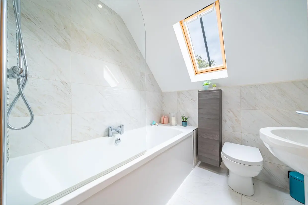 Upstairs, there are two generous double bedrooms and a well-appointed family bathroom. To the rear of the property, there is also potential for useful outdoor storage space.