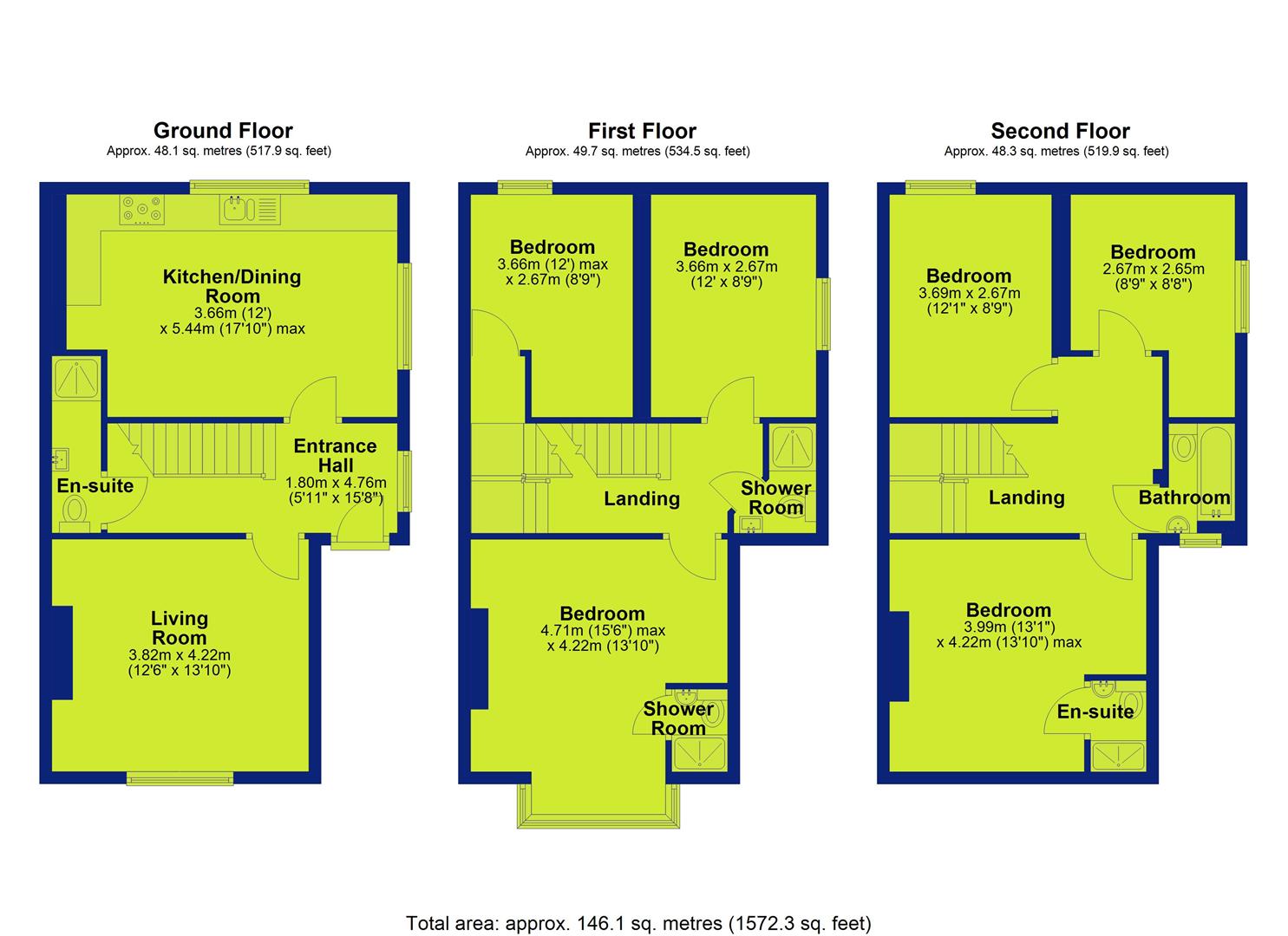 6 Double Bedrooms – 2 with en suites, 4 sharing 3 further communal bathrooms