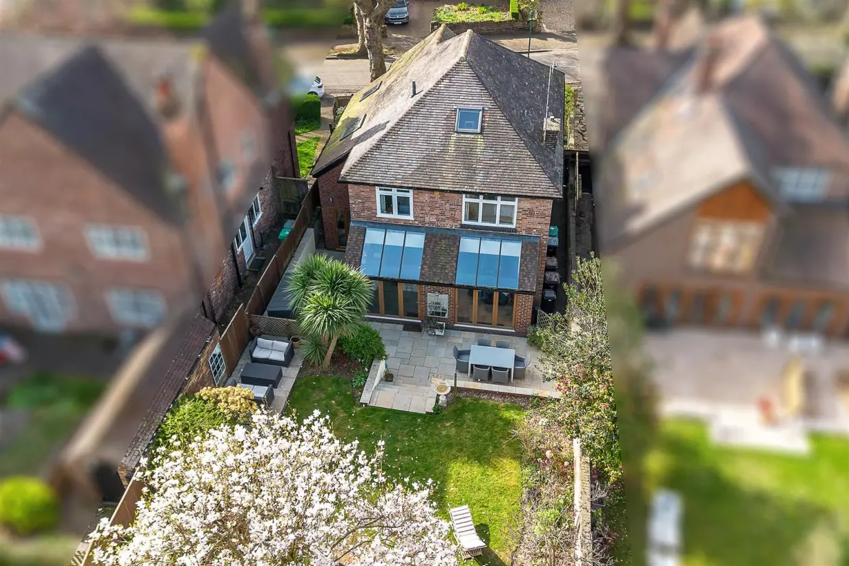 The exterior of the property is equally impressive, with a gated front driveway offering off-road parking for three vehicles. The beautifully landscaped rear garden is tiered, featuring two limestone patios, a lawn, mature trees, a garden shed, and well-maintained borders.