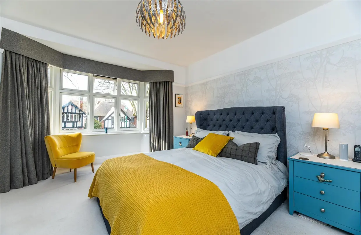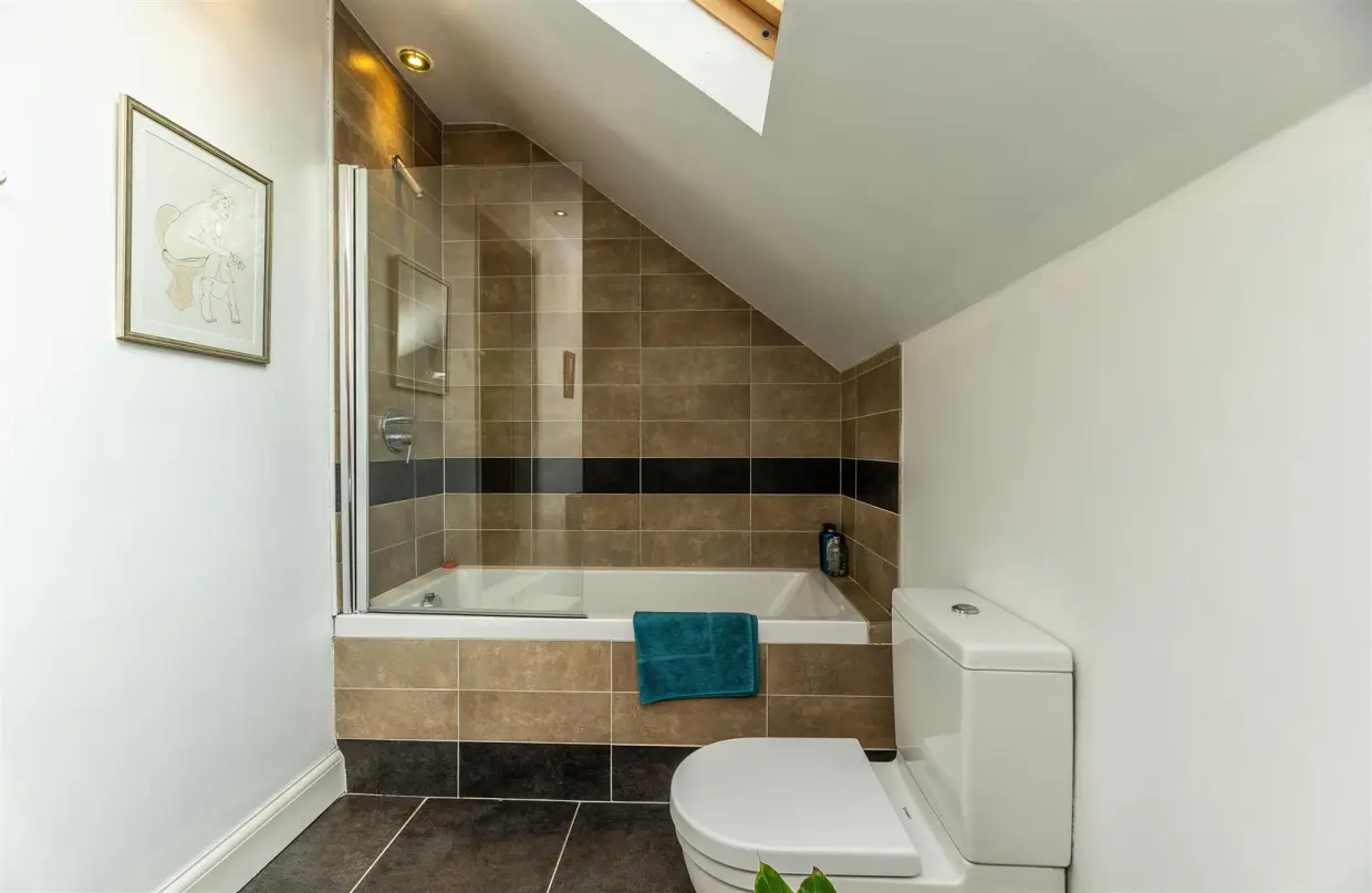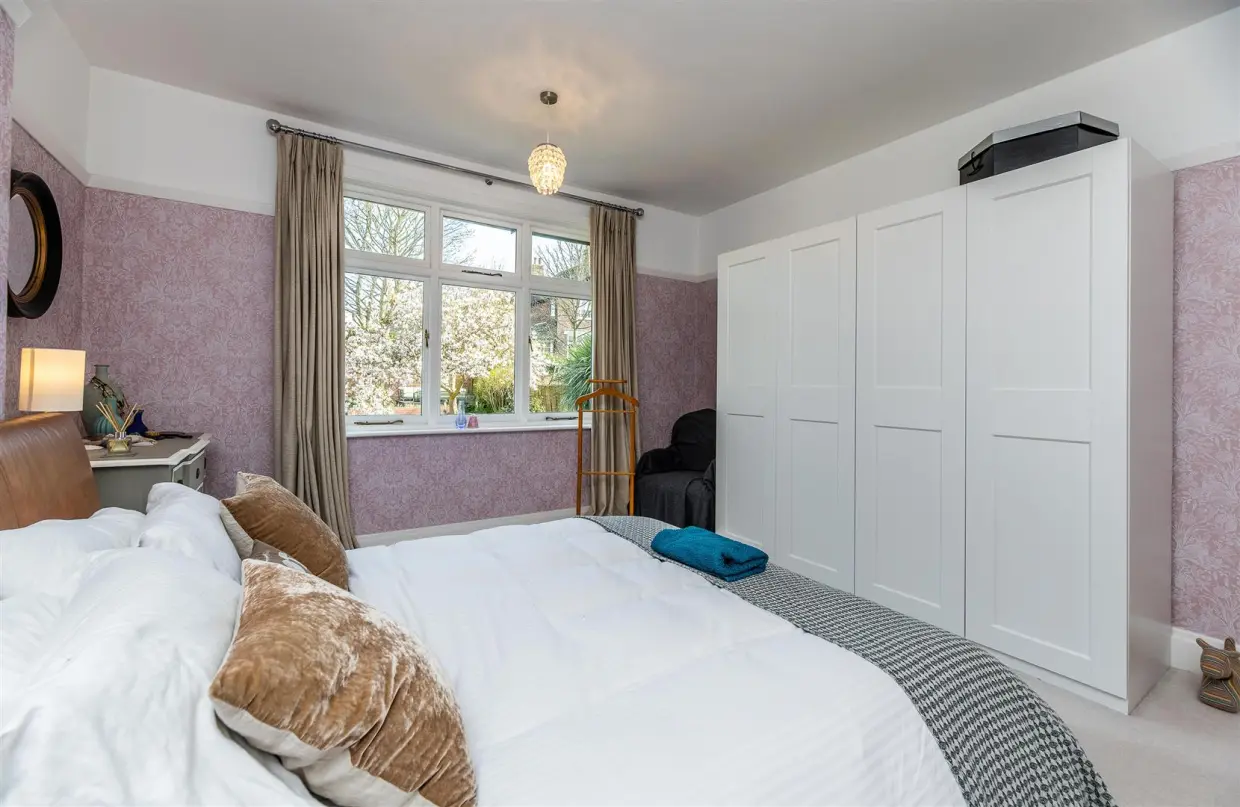 Upstairs, the principal bedroom offers a bright and airy retreat, complete with a large window, built-in wardrobes, and a modern en-suite shower room with a three-piece suite. Three additional well-proportioned bedrooms provide ample space, with two of the guest bedrooms offering pleasant views of the garden. The family bathroom is equally impressive, featuring twin sinks and high-quality fittings.