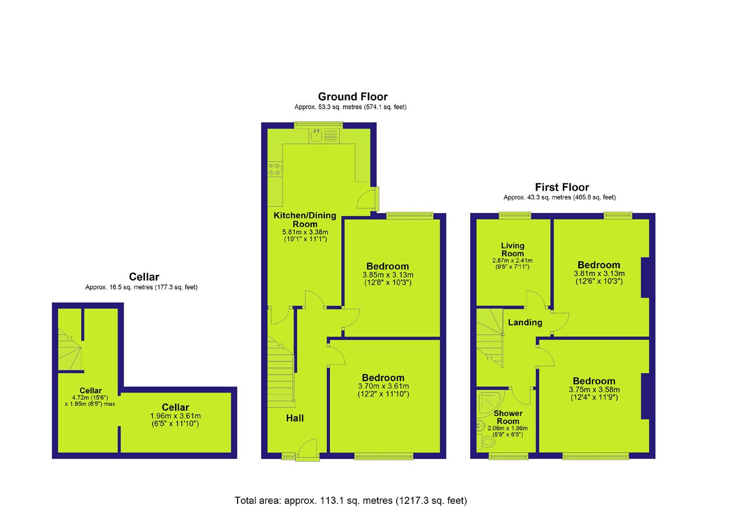 The accommodation is arranged over three floors and includes four spacious double bedrooms, an extended kitchen/diner to the rear, first-floor lounge, and a shared bathroom. The full-height basement (with no natural light) offers excellent scope for conversion into a communal amenity or cinema room, subject to planning.