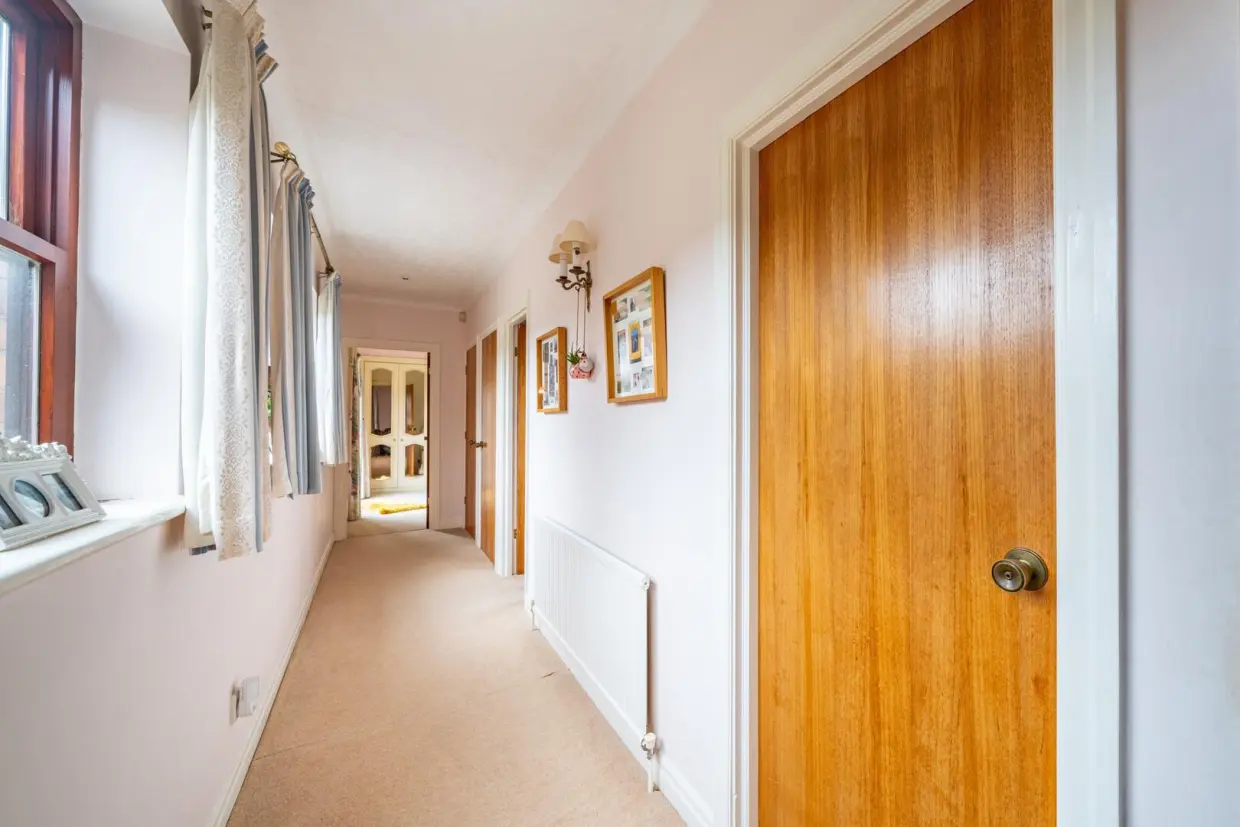The property provides multiple well-proportioned double bedrooms, including a substantial main bedroom with an en-suite, alongside a family bathroom and additional WC. The layout is thoughtfully designed, making it equally well suited to families, downsizers, or those seeking flexible work-from-home space. A double garage is also directly accessible, adding further practicality.