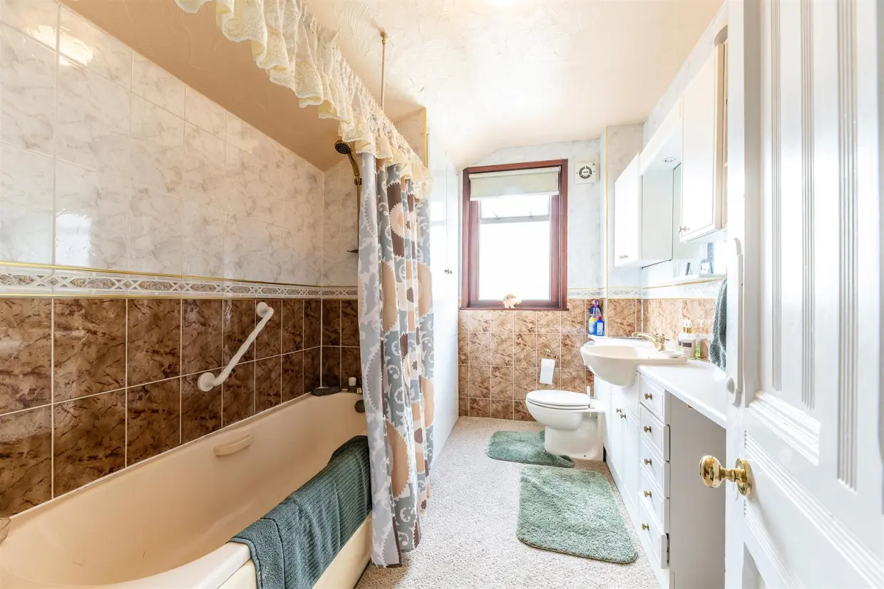To the first floor, there is a generous landing area with built-in storage, three sizeable double bedrooms, and a generous three-piece bathroom. There is also a further storage area offering potential to create an en-suite for the main bedroom.