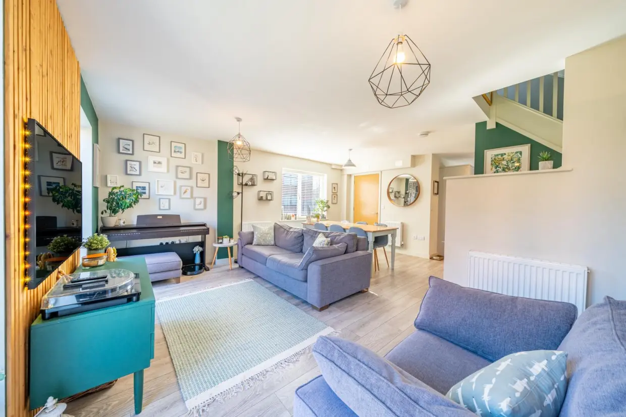 The ground floor features a welcoming entrance hall with a convenient downstairs WC, leading through to a spacious lounge/diner, providing a fantastic open-plan living and dining space perfect for relaxing or entertaining. The kitchen is well positioned overlooking the front, with integrated appliances, base units and space for a fridge freezer.To the first floor, the property offers three bedrooms, including a well-proportioned master bedroom with en-suite shower room. A further family bathroom serves the remaining bedrooms, making the layout practical for modern family living.