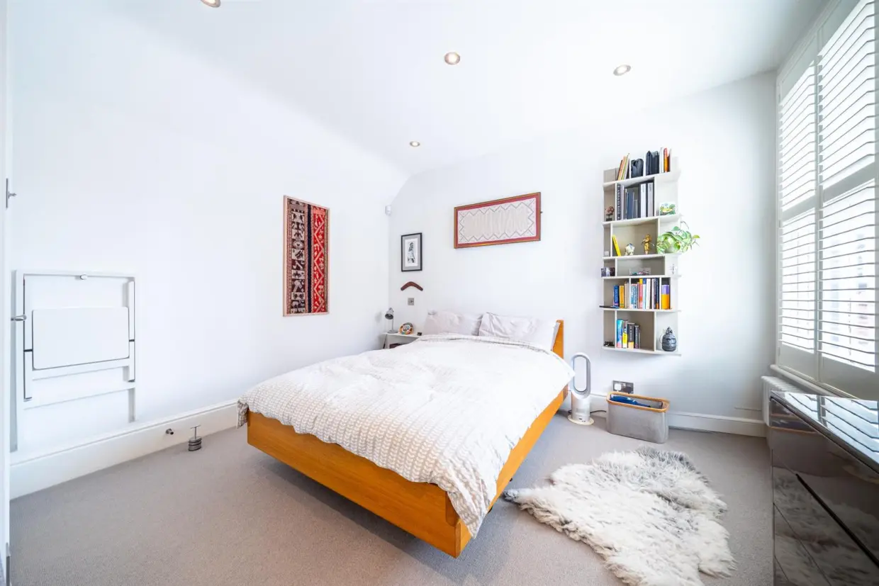 - Spacious double bedroom with dual-aspect windows and plantation shutters