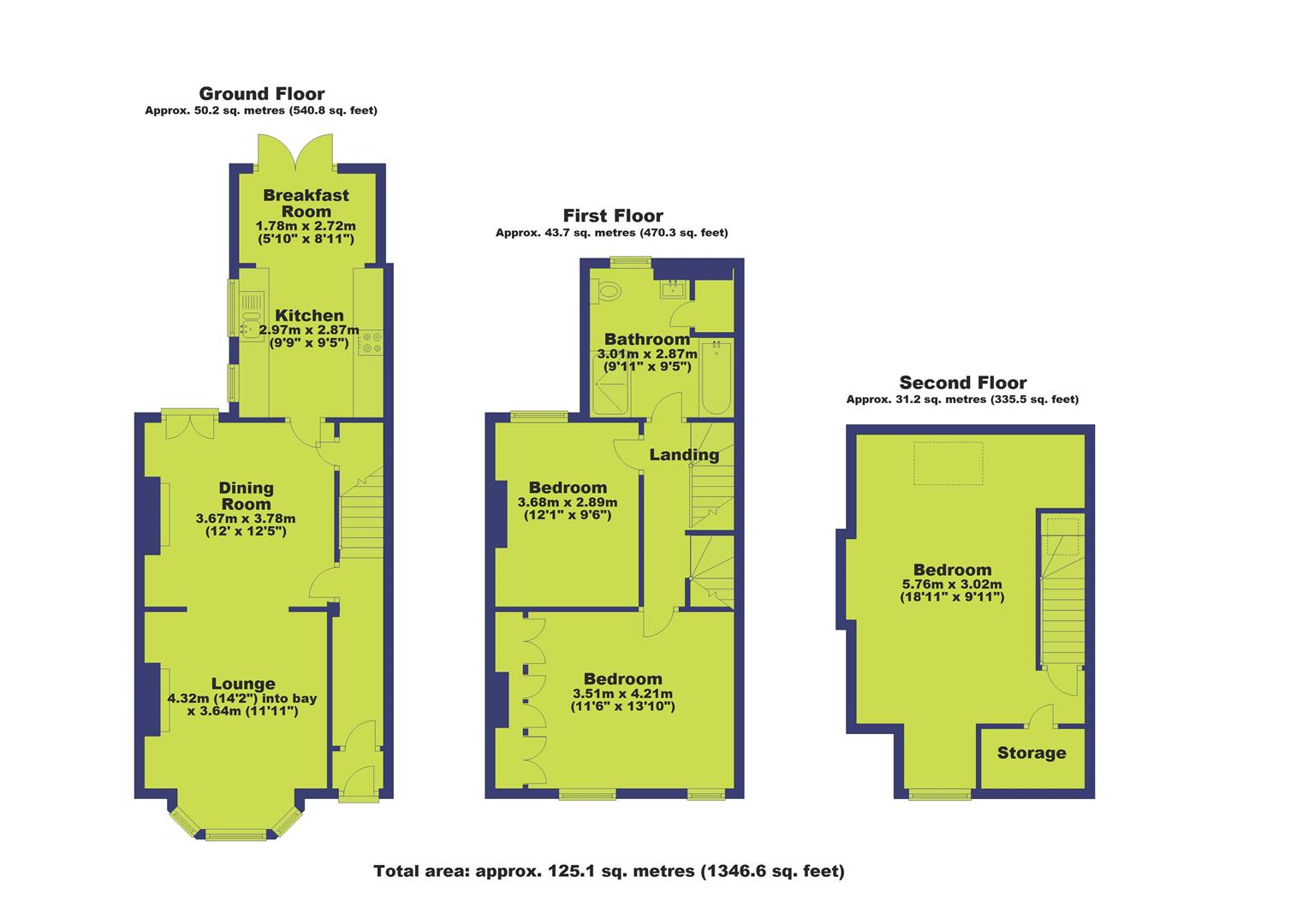 - Three bedrooms