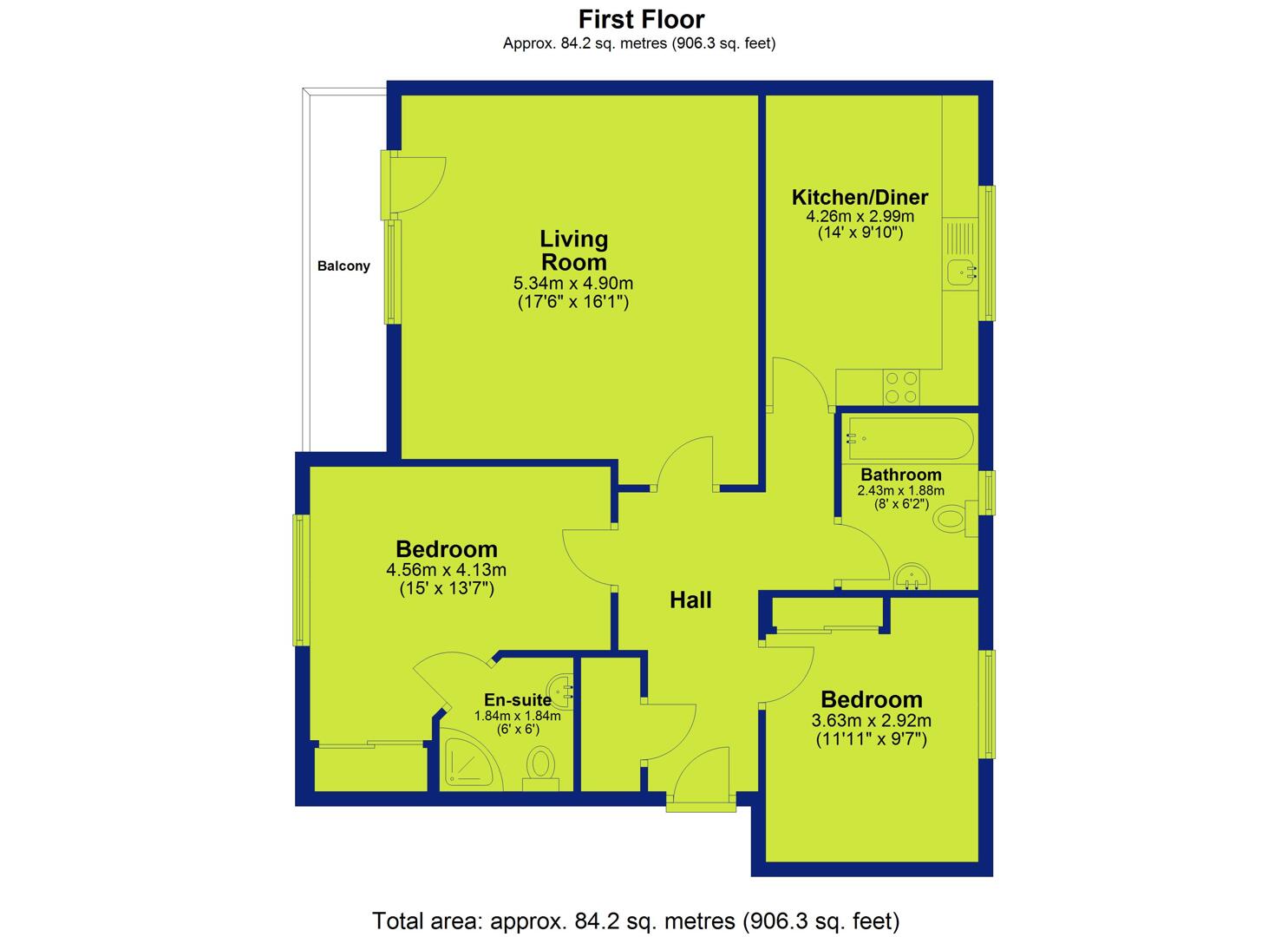This particular first floor apartment has bright and spacious accommodation. A welcoming entrance hall leads to a generous lounge/dining room, opening onto a large private South West facing balcony -perfect for enjoying the sunshine or relaxing. The kitchen/diner has fitted integrated appliances and provides space for a small table, making it ideal for cooking and entertaining.Sleeping accommodation comprises two well-proportioned double bedrooms, including a master bedroom with an en-suite shower room, and a family bathroom serving the second bedroom. The apartment combines comfort, privacy, and modern functionality, making it an appealing choice for a variety of buyers.
