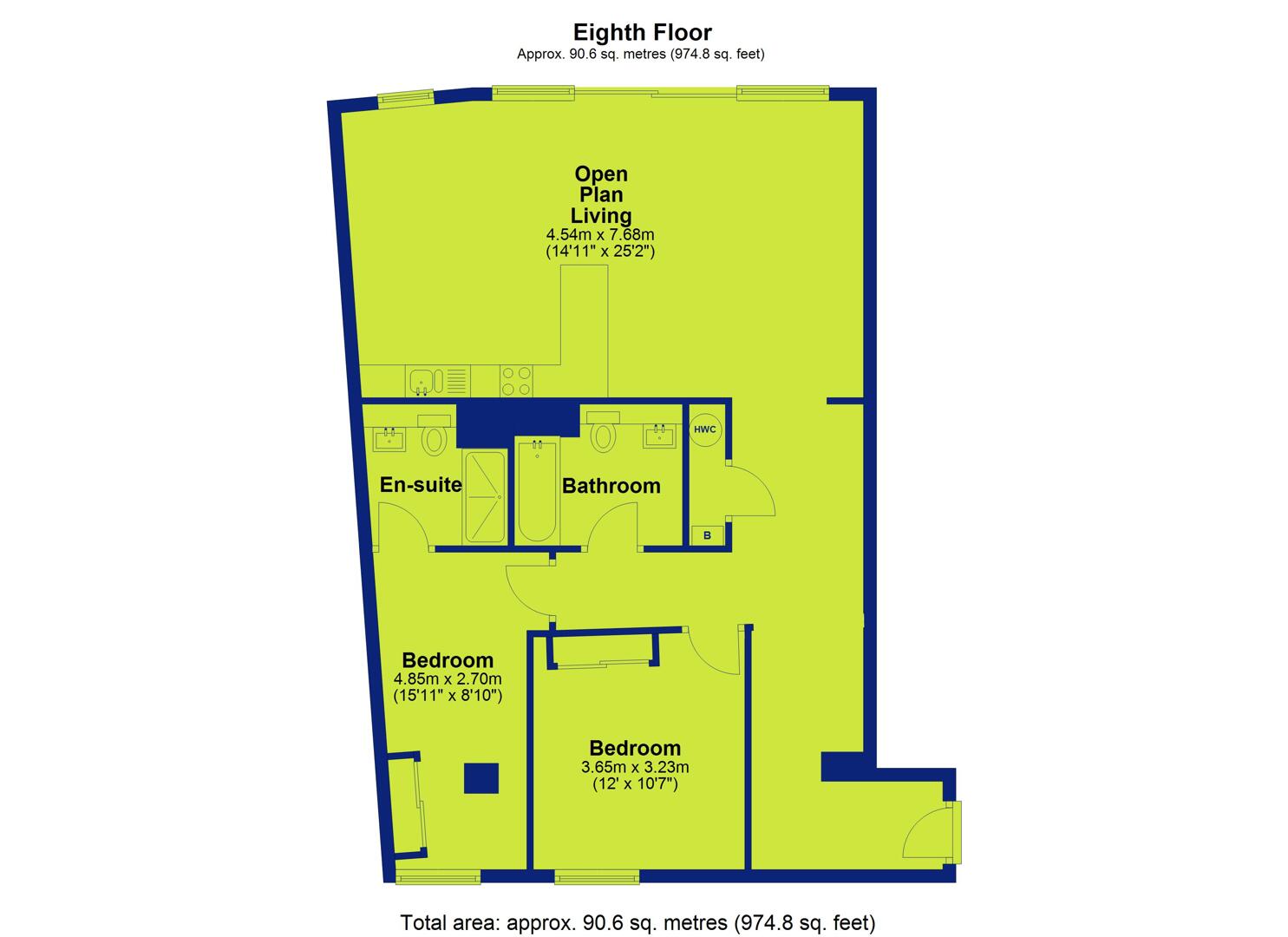 The accommodation is arranged around a generous open plan living, dining and kitchen space, which is light filled and well proportioned, making it ideal for both entertaining and daily living while enjoying the far reaching river and city views. The kitchen is neatly laid out with ample workspace and storage, flowing seamlessly into the main living area.There are two well sized double bedrooms, with the principal bedroom benefiting from a modern en suite shower room. A separate, well appointed bathroom serves the second bedroom and guests, while storage is thoughtfully incorporated throughout the apartment.