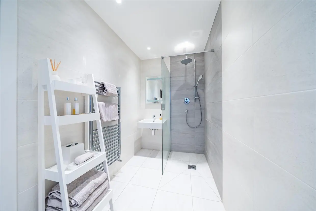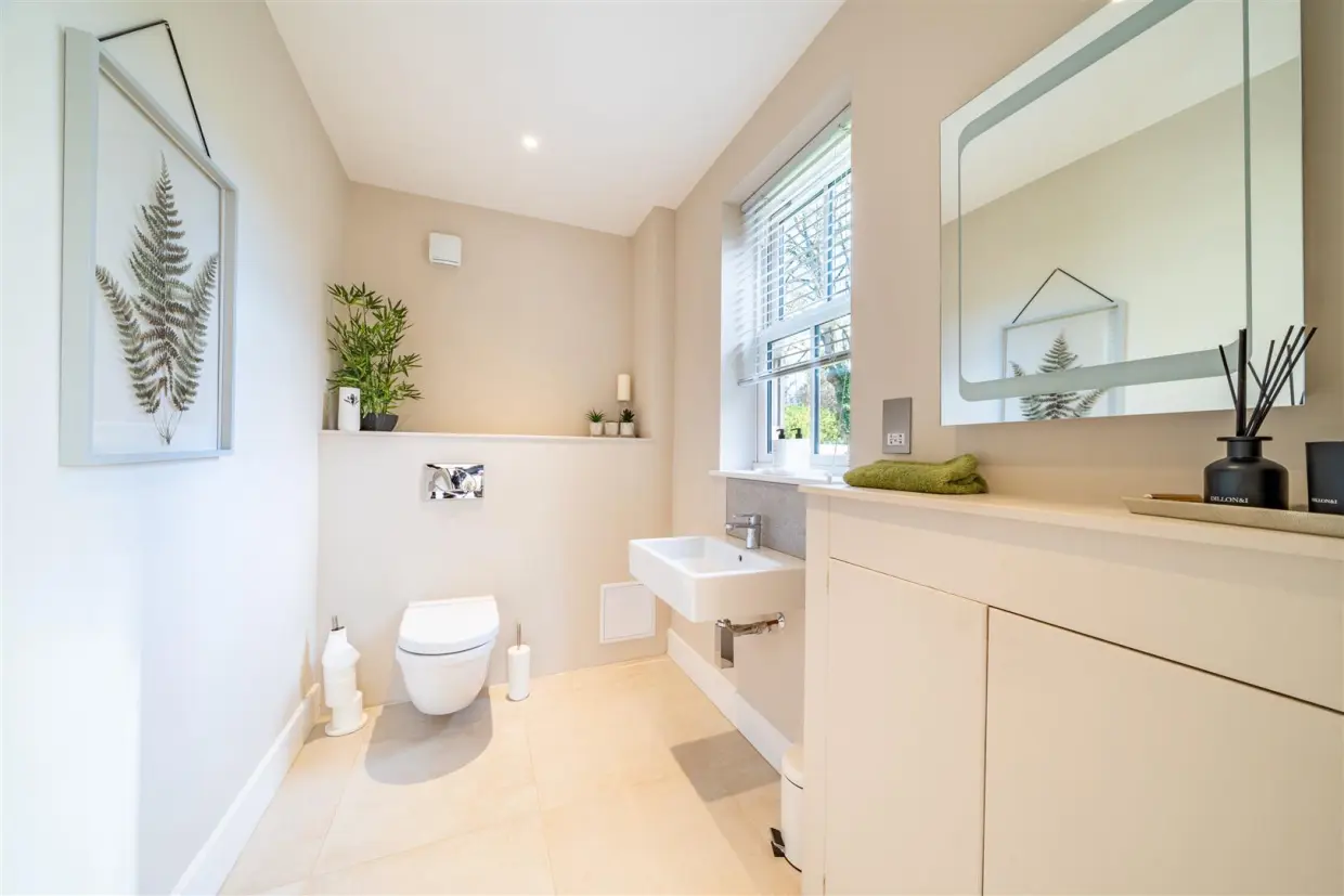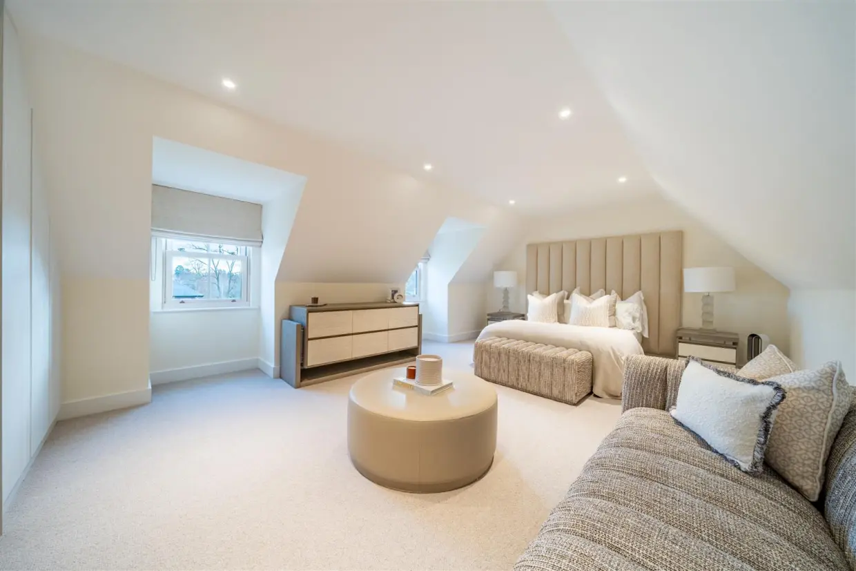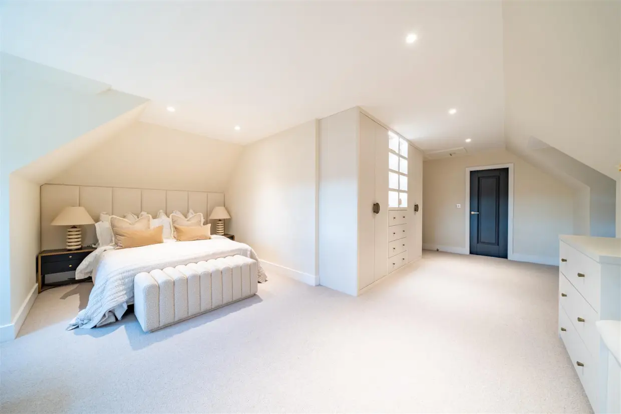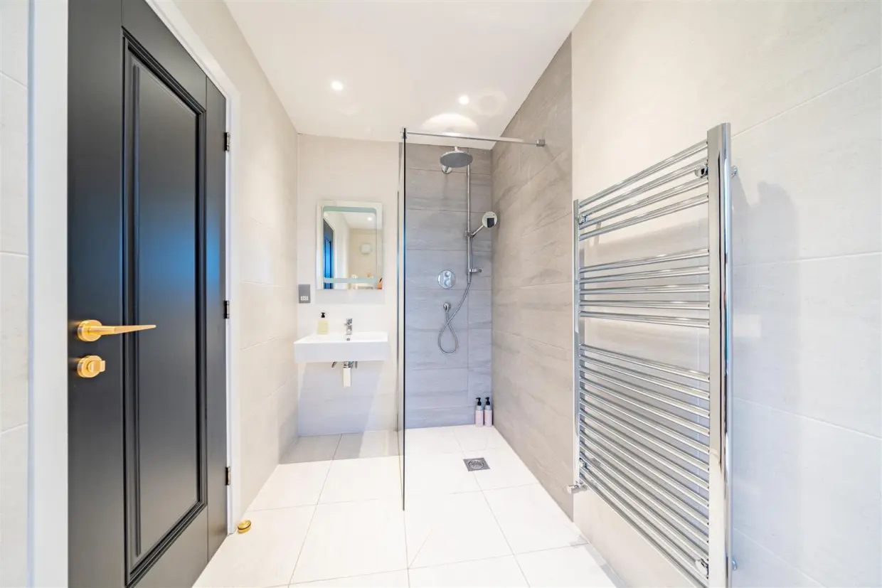 The first floor features a beautifully arranged collection of bedroom suites, including a luxurious master suite complete with a bespoke dressing area and an elegant en-suite bathroom. The remaining bedrooms are equally generous in size and are complemented by high-specification bathrooms featuring contemporary tiling, walk-in showers, and premium fixtures.