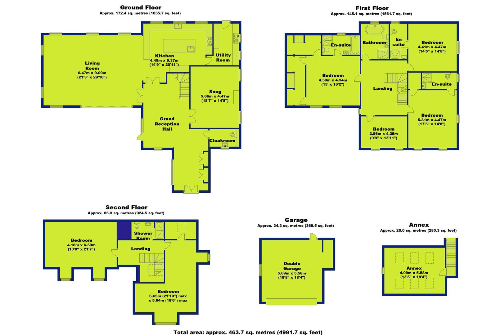 The second floor offers two further substantial bedrooms and an additional shower room, making it an ideal space for guests, teenagers, or live-in staff who may require a degree of independence and privacy.