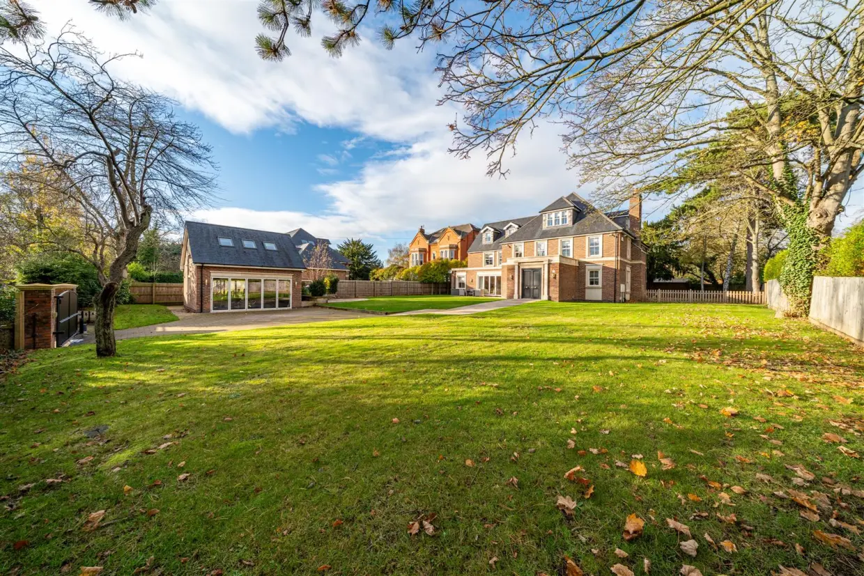Externally, the property benefits from an expansive lawned garden bordered by mature planting that affords a high level of seclusion. A large terrace provides an excellent setting for outdoor dining and relaxation. To the front, electric gates open onto a generous driveway with off-road parking for multiple vehicles, along with access to a detached double garage. The garage is currently fitted out as a high-end home gym, offering superb versatility to suit a range of lifestyle needs.