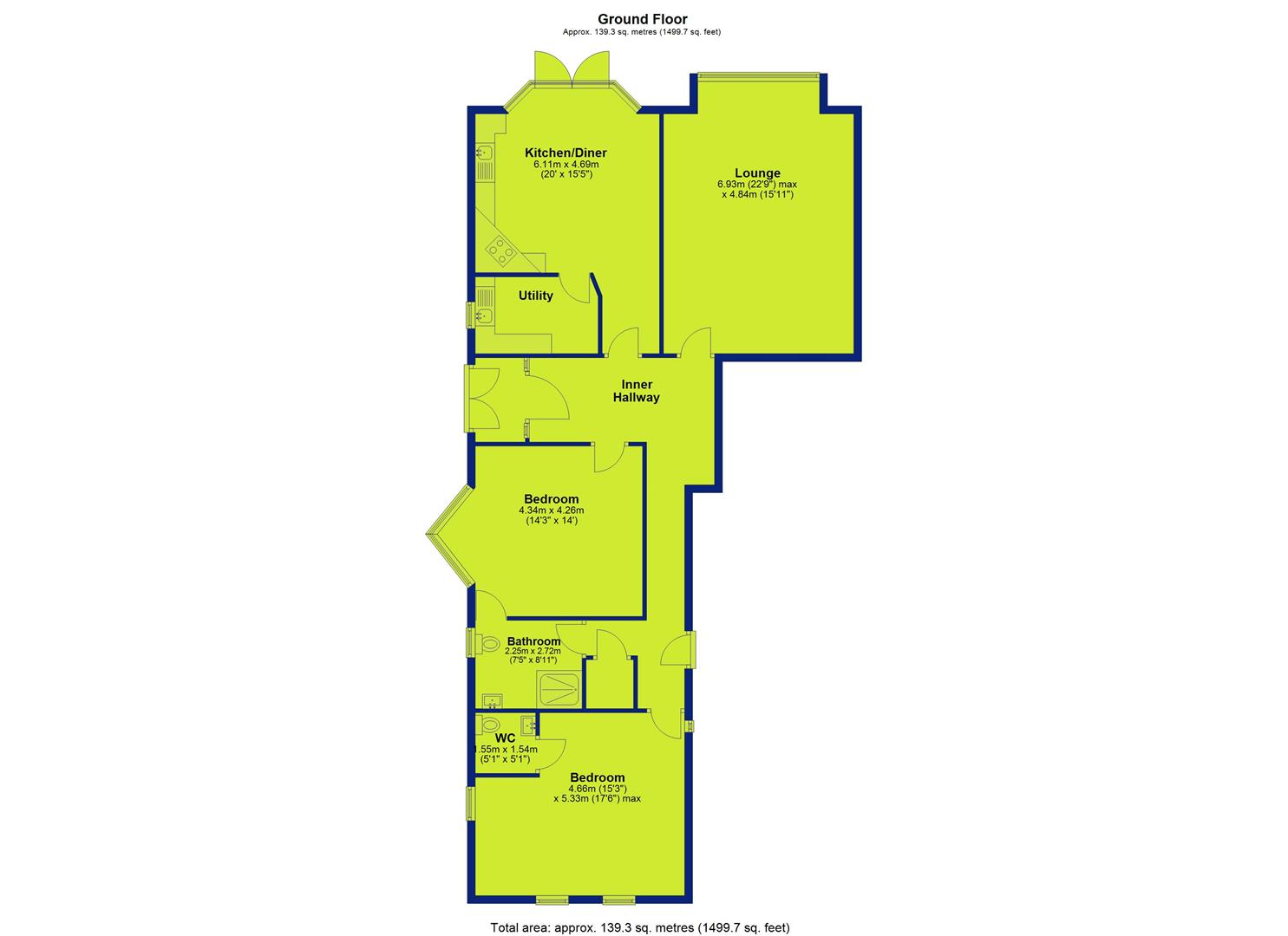 - Two double bedrooms with en-suite facilities (1 WC only)