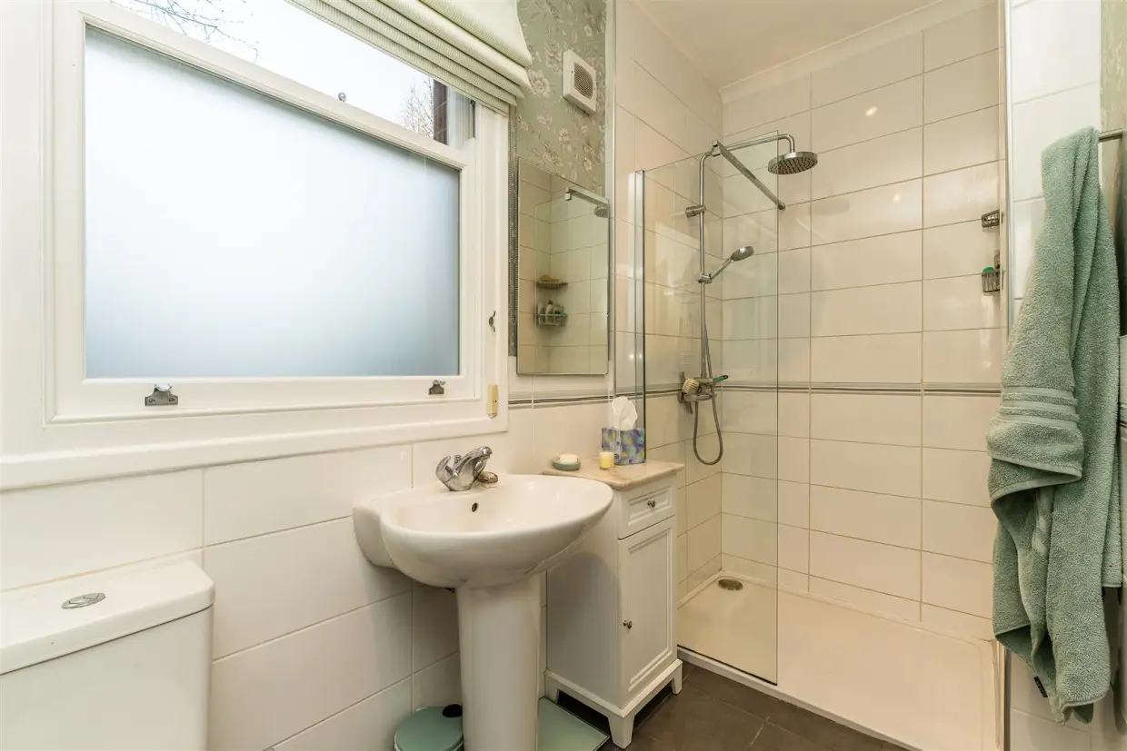 Conveniently located, is an adjacent shower room with modern suite.